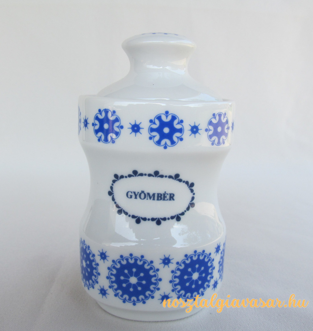Retro porcelán kék mintás fűszertartó gyömbér felirattal