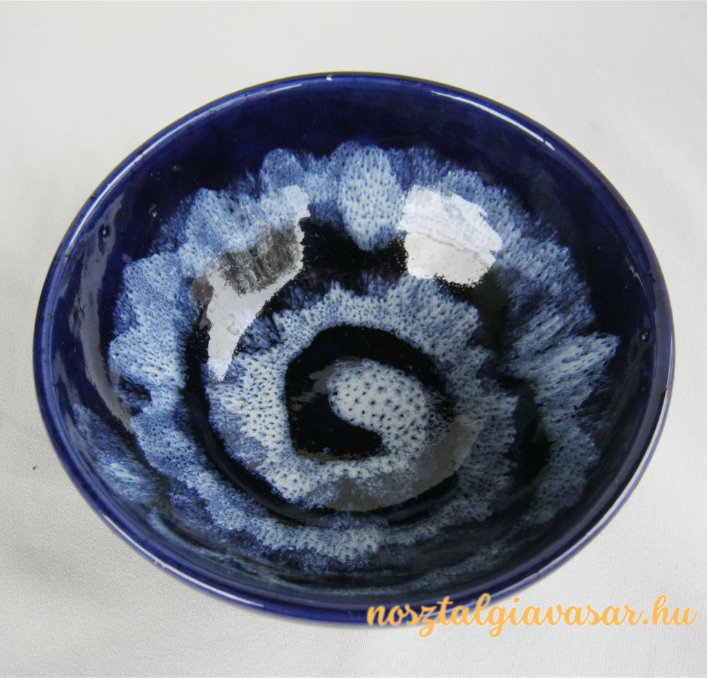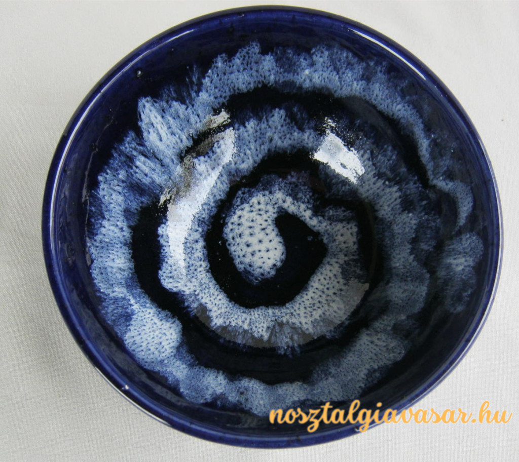Kézzel festett retro mázas kerámia tál kék spirál mintával