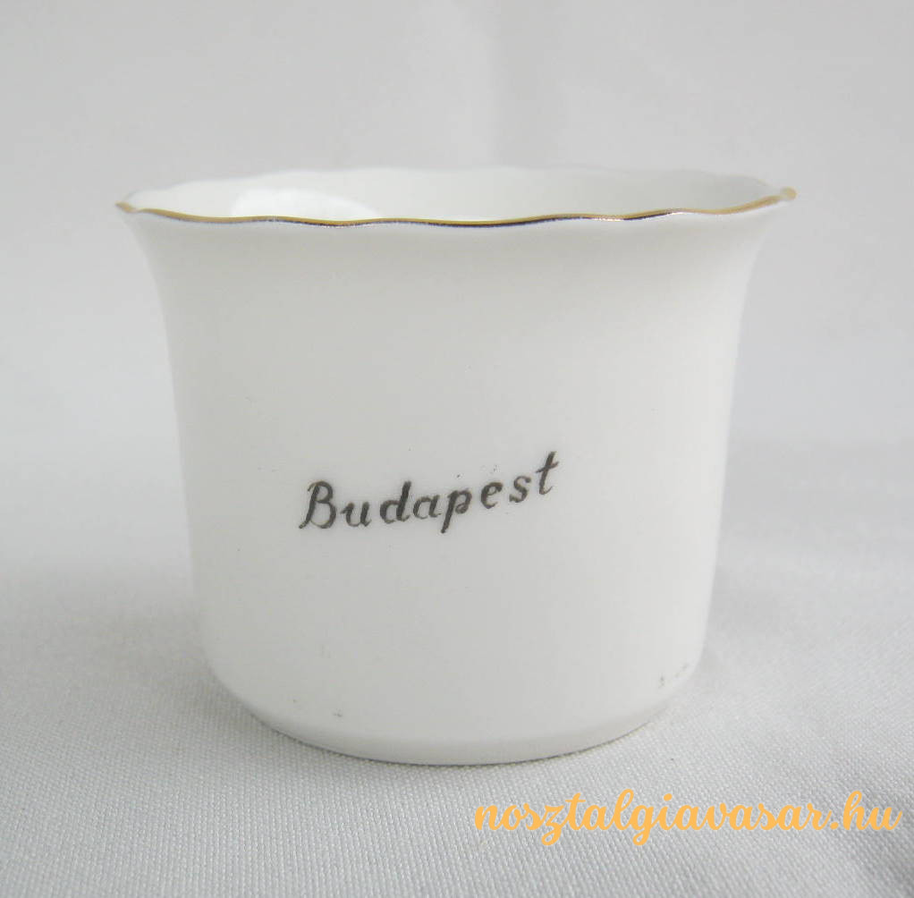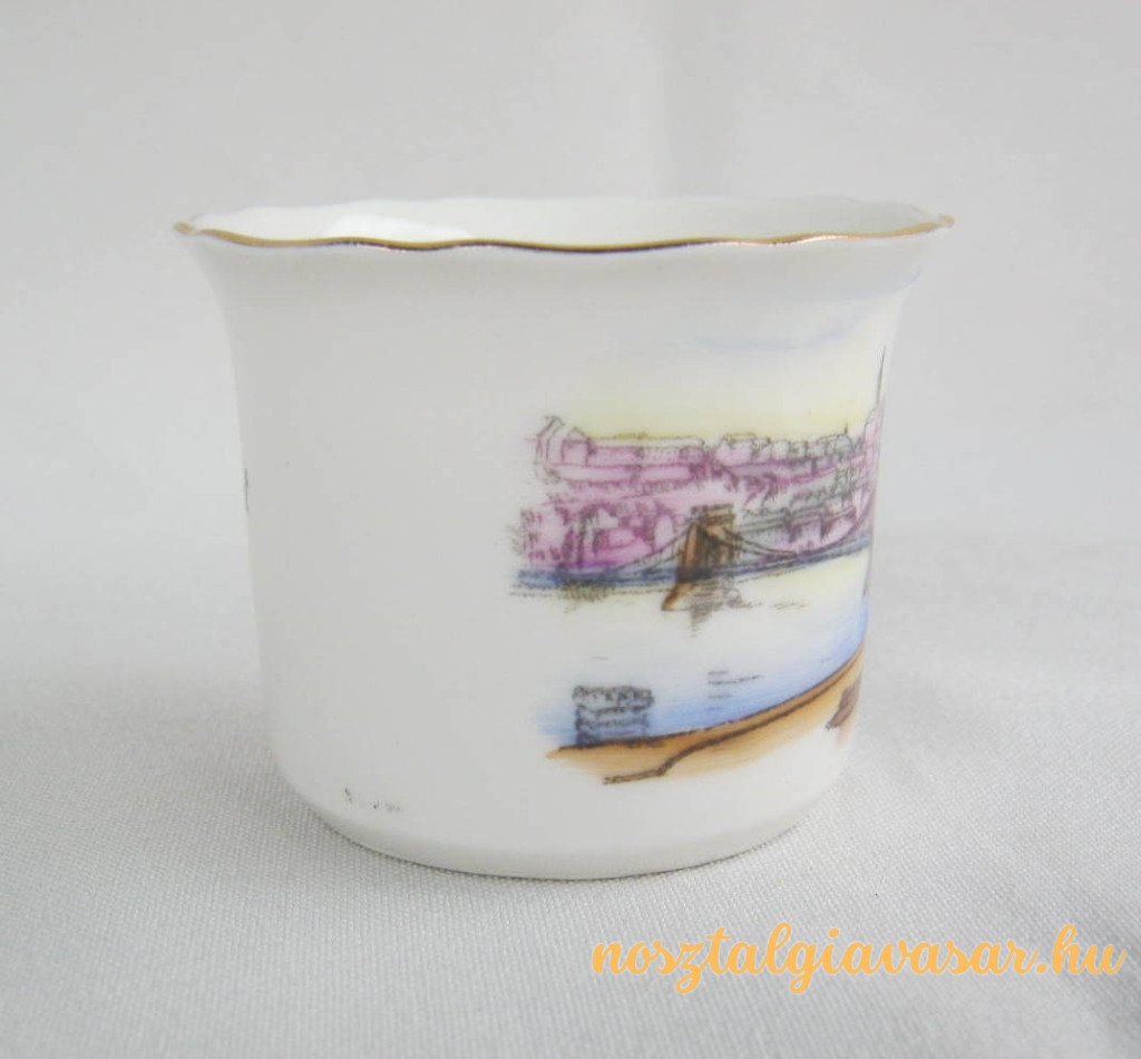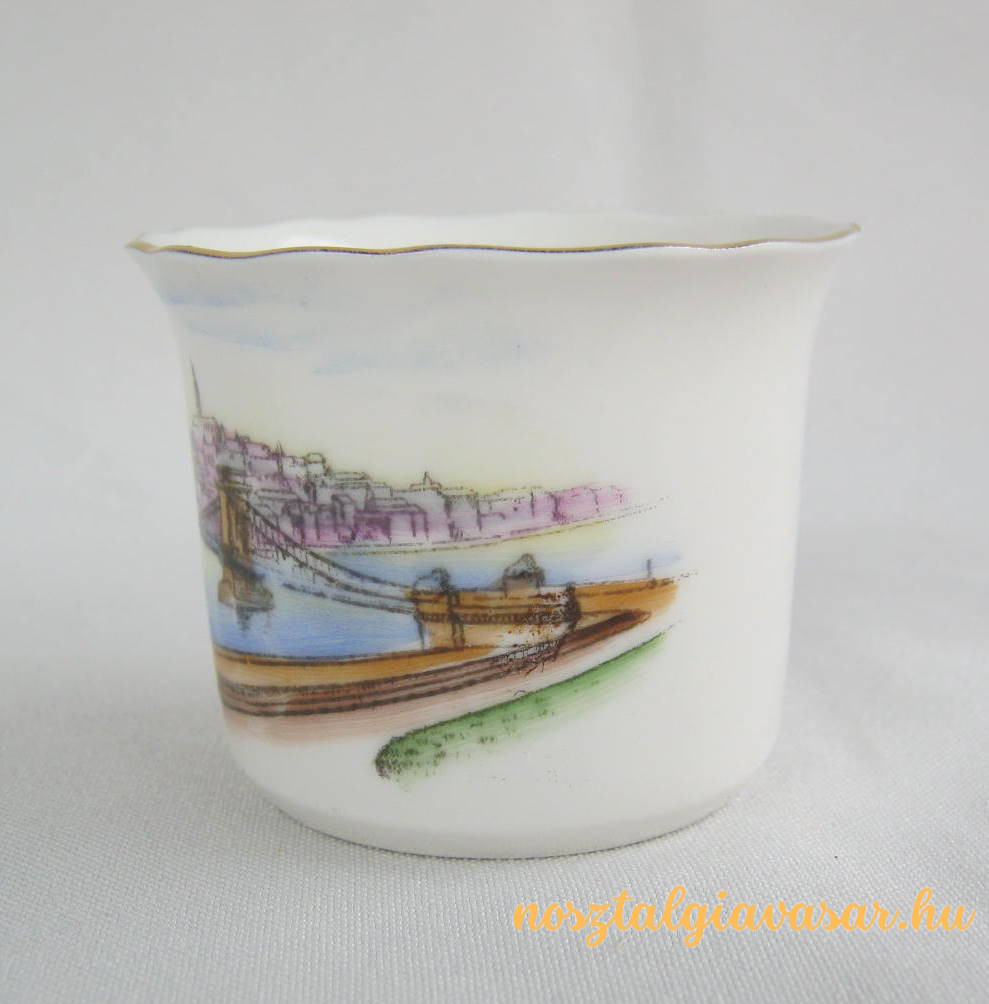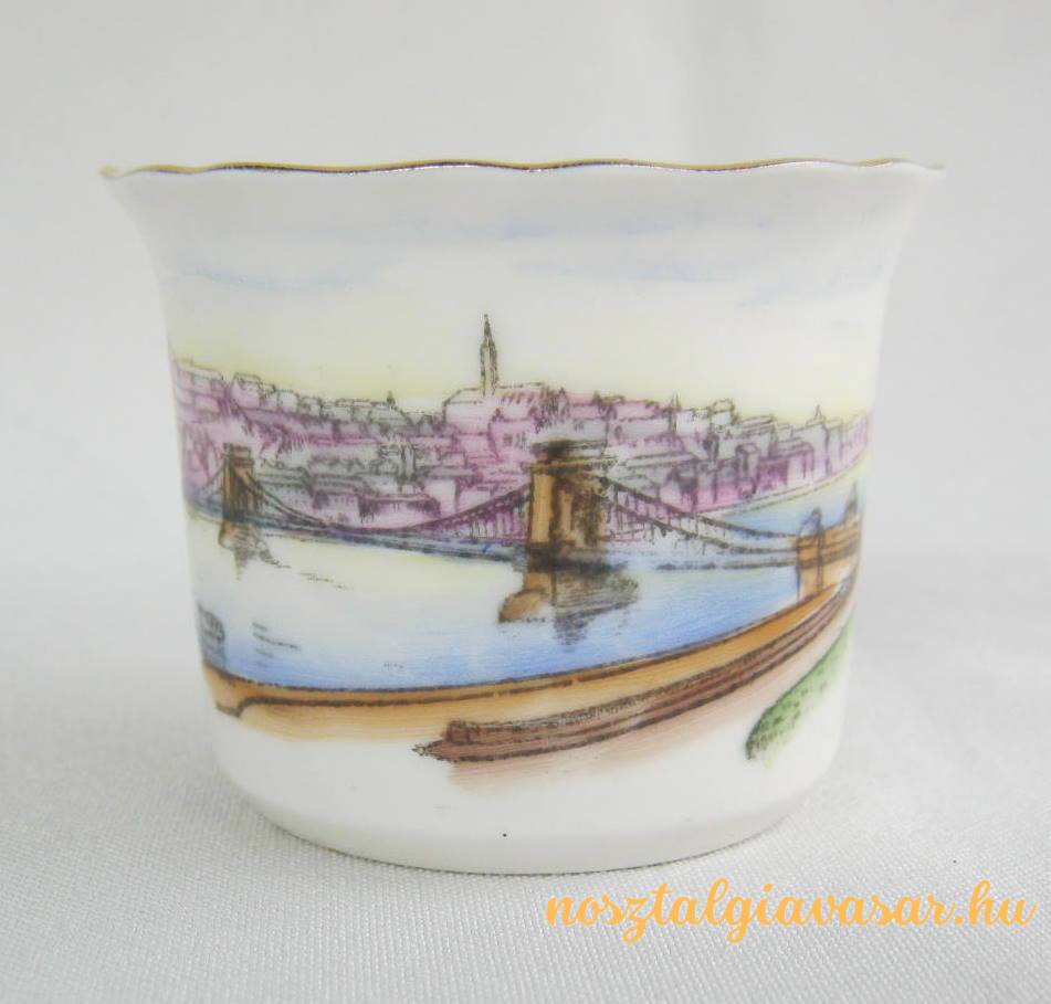 Retro porcelán dísztárgy Budapest felirattal, egyik oldalán a Lánchíddal