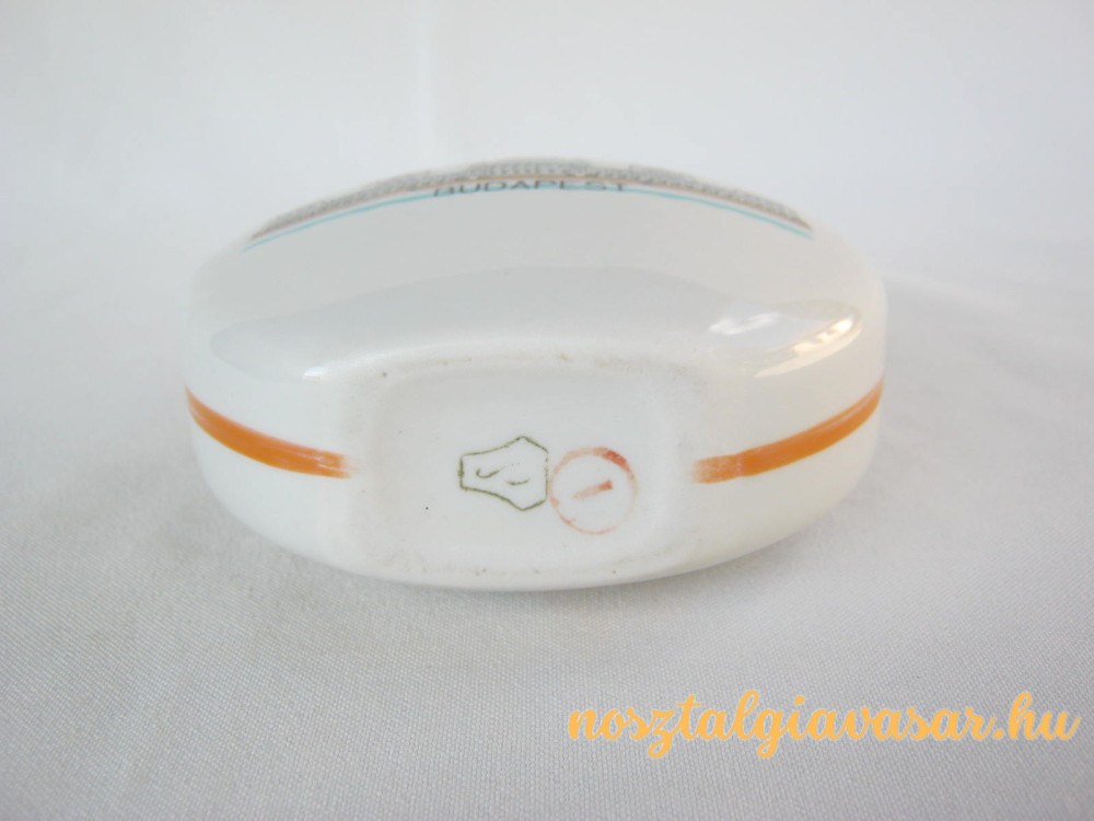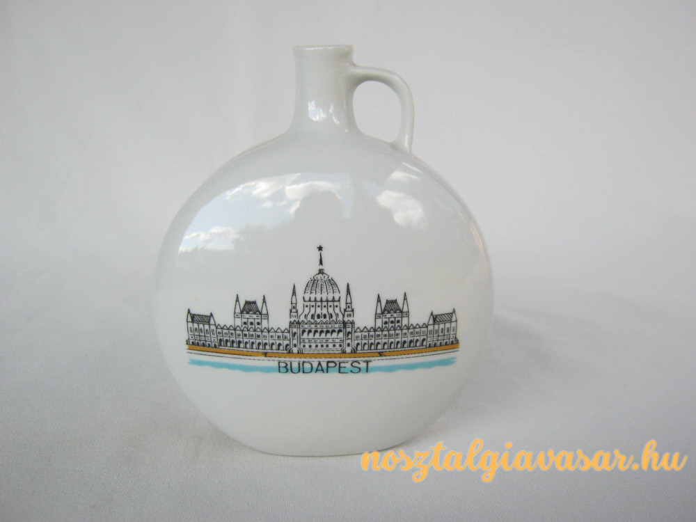 Retro porcelán dísztárgy Budapest felirattal, egyik oldalán a Parlament épületével
