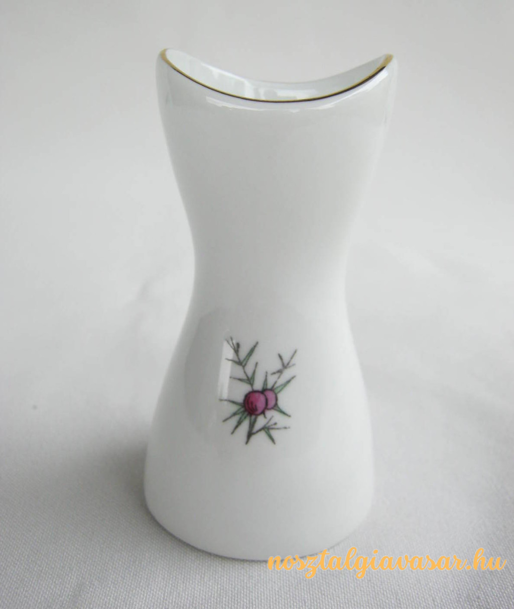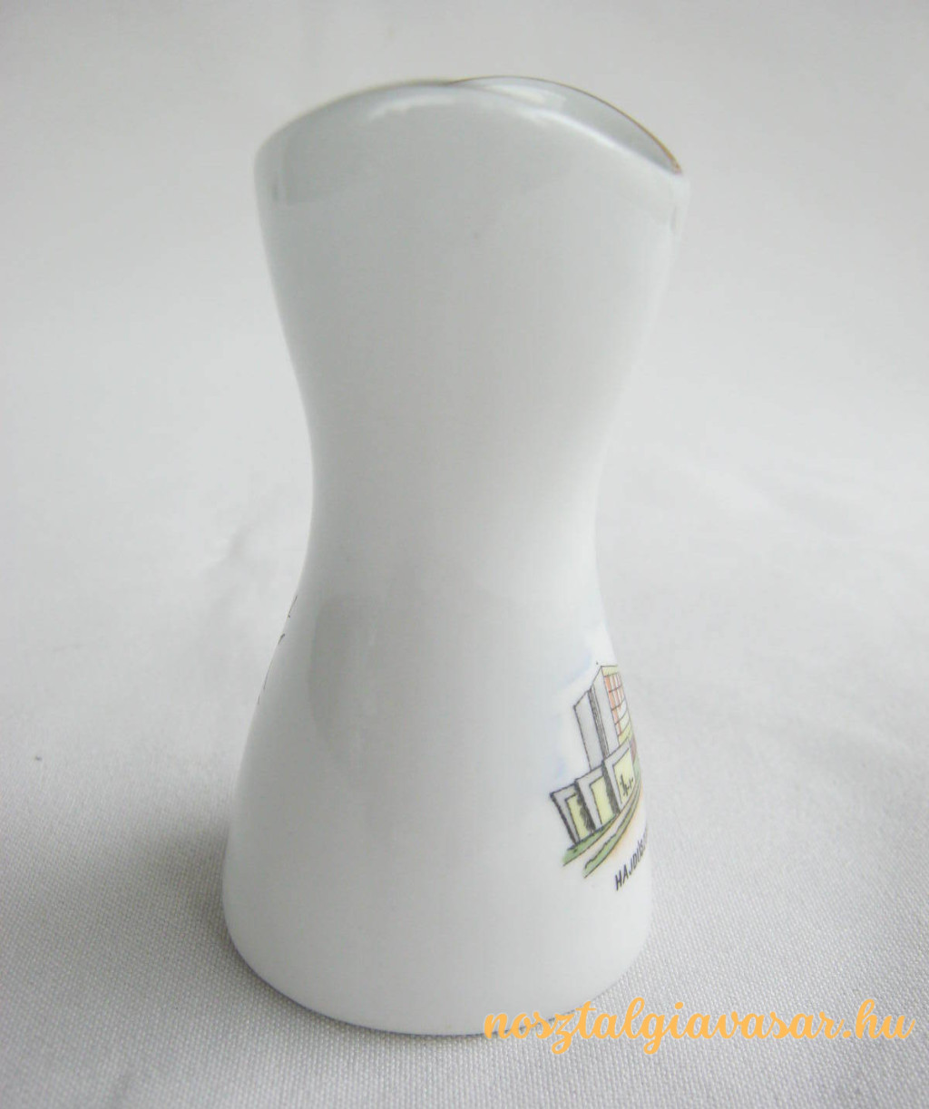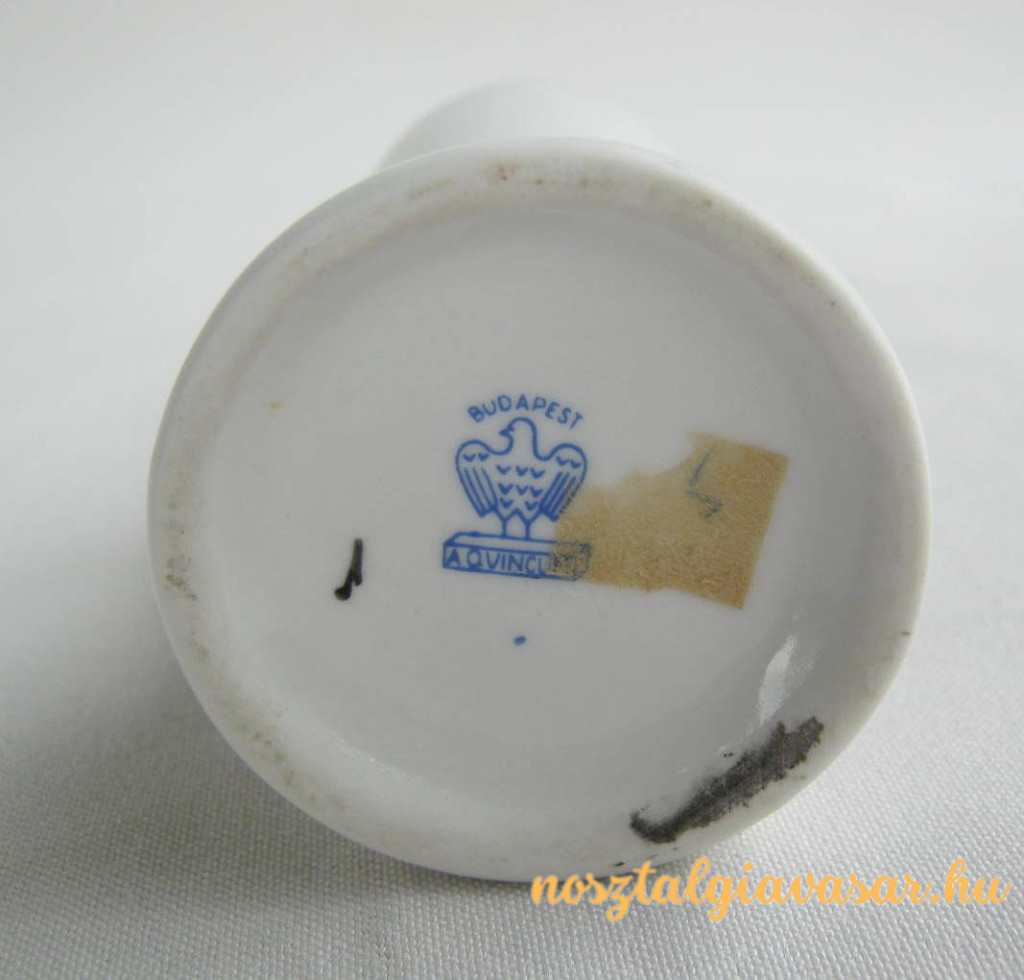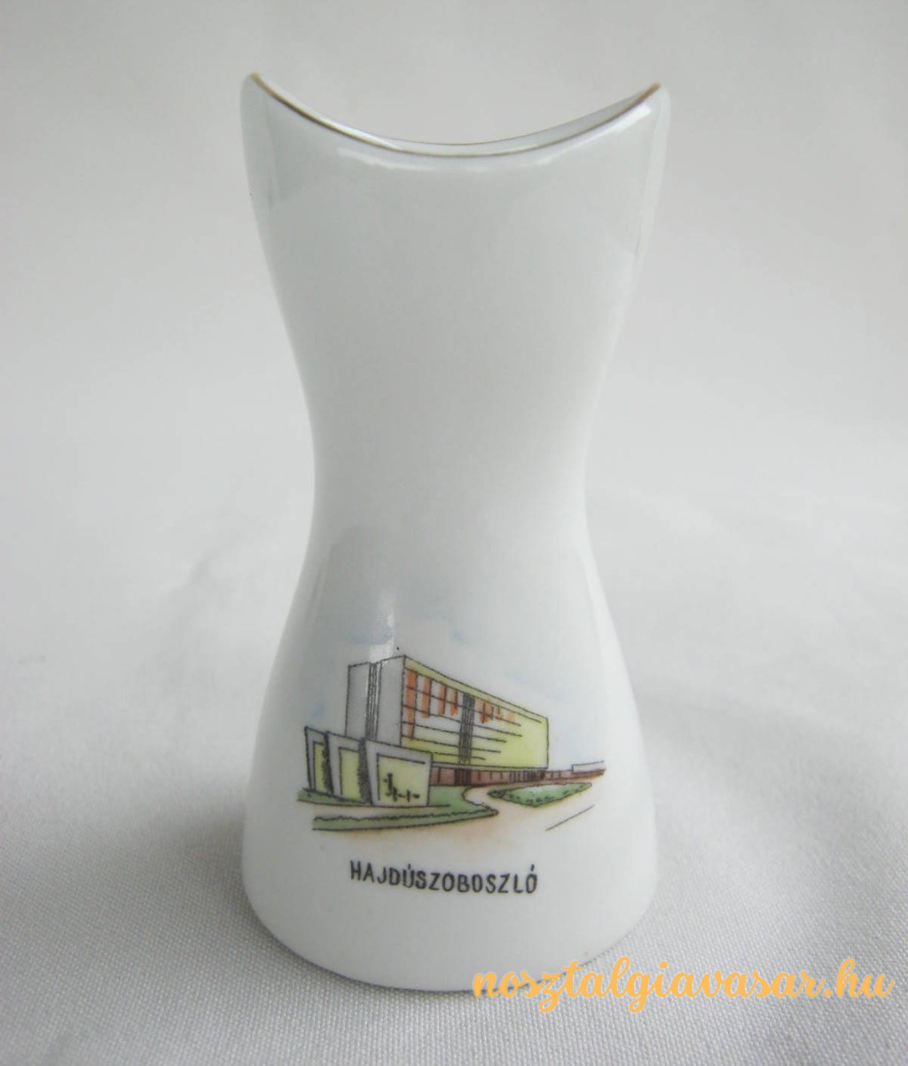 Retró Hajdúszoboszlói emlék porcelán váza Gyártó/készítő: Aquincumi Porcelángyár Jelzés: alján kék pecsét Méret: magasság 9 cm Állapot: korának megfelelő, képek szerint Rendelhető mennyiség: 1 db