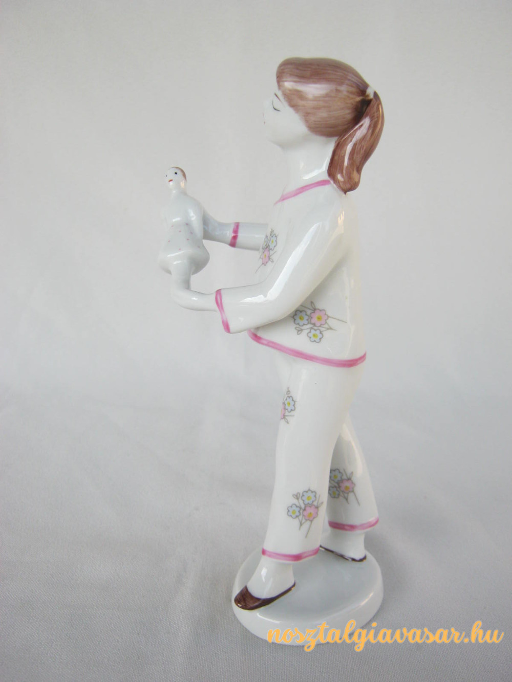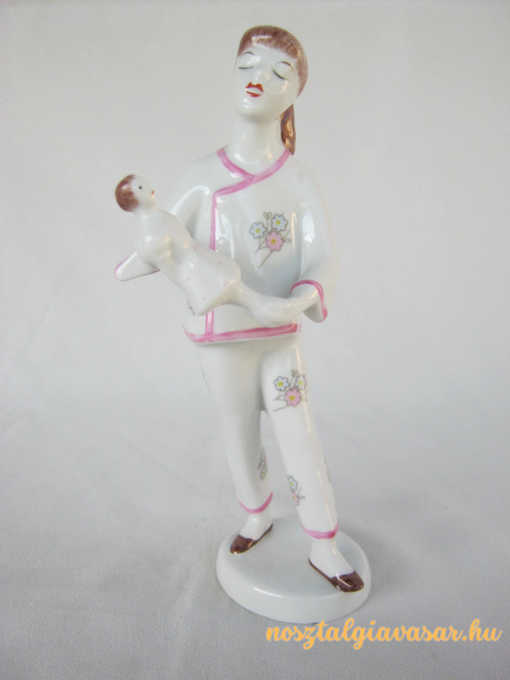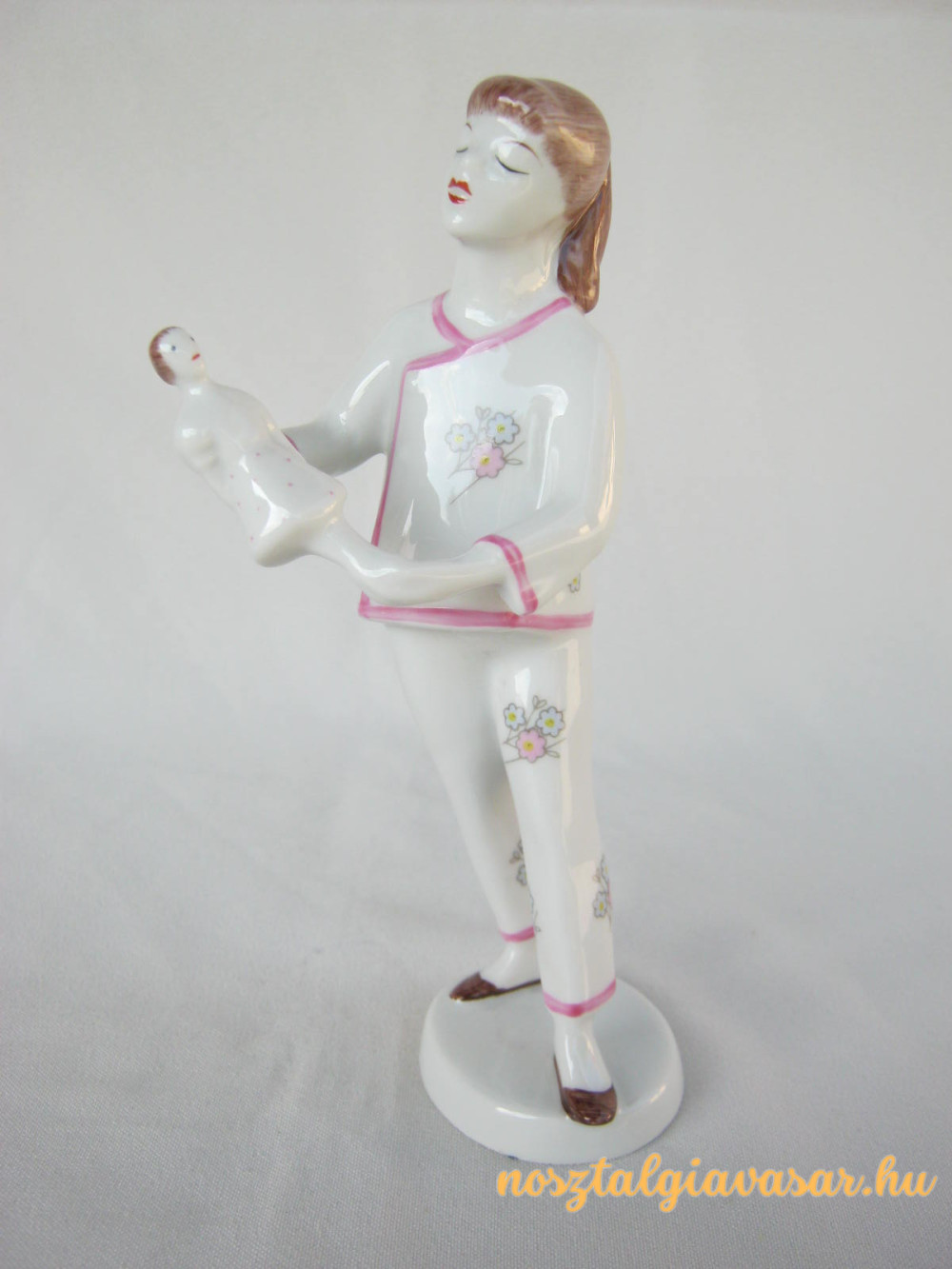 Kézzel festett retro porcelán figura babázó kislány