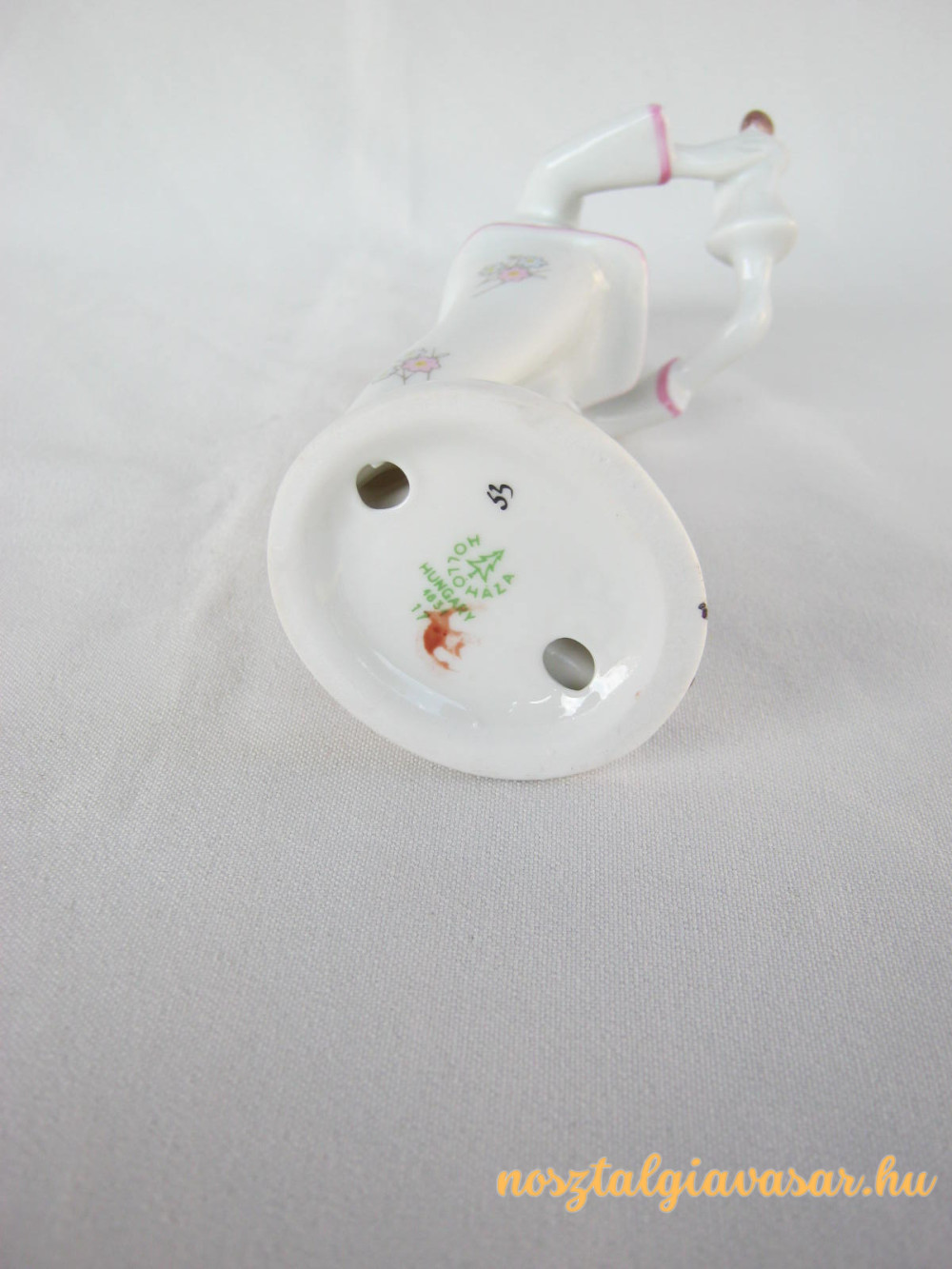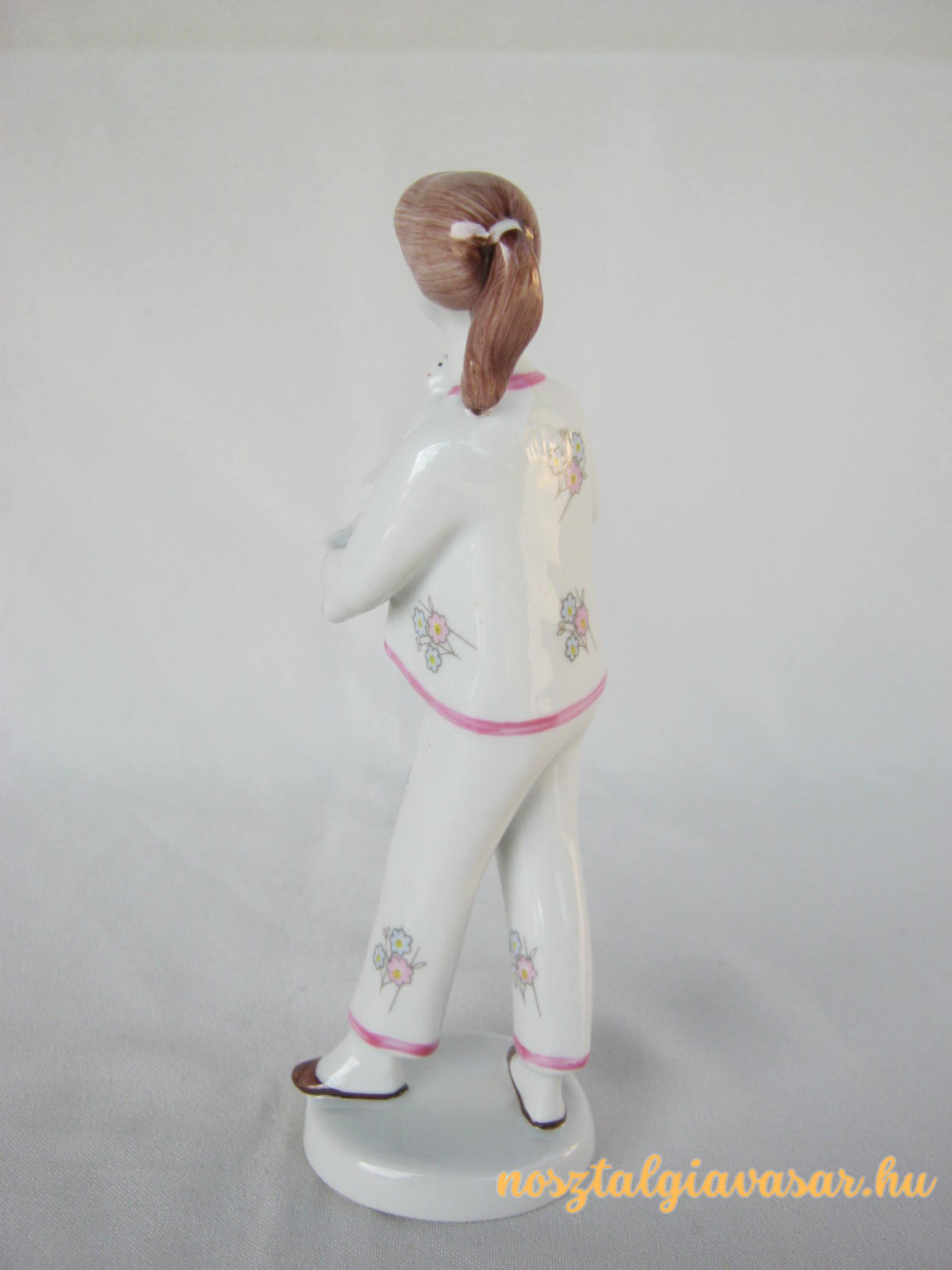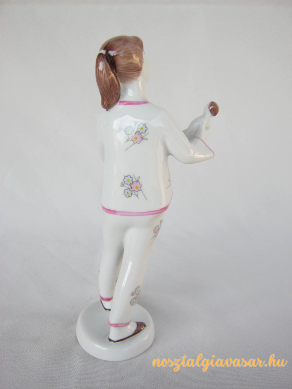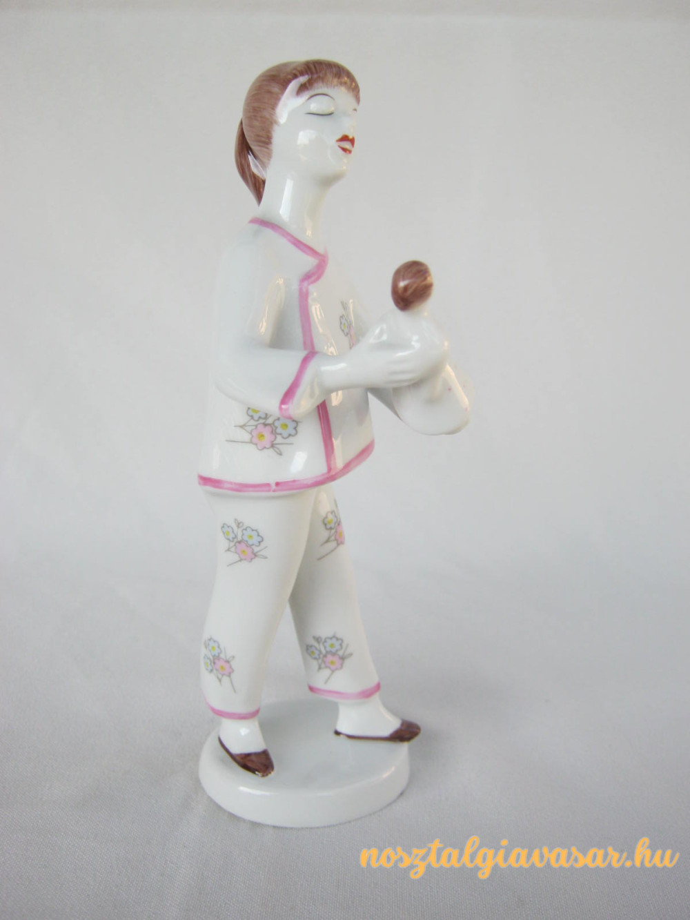 Kézzel festett retro porcelán figura babázó kislány