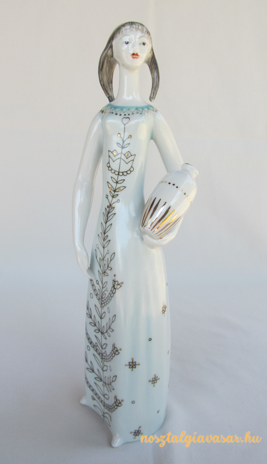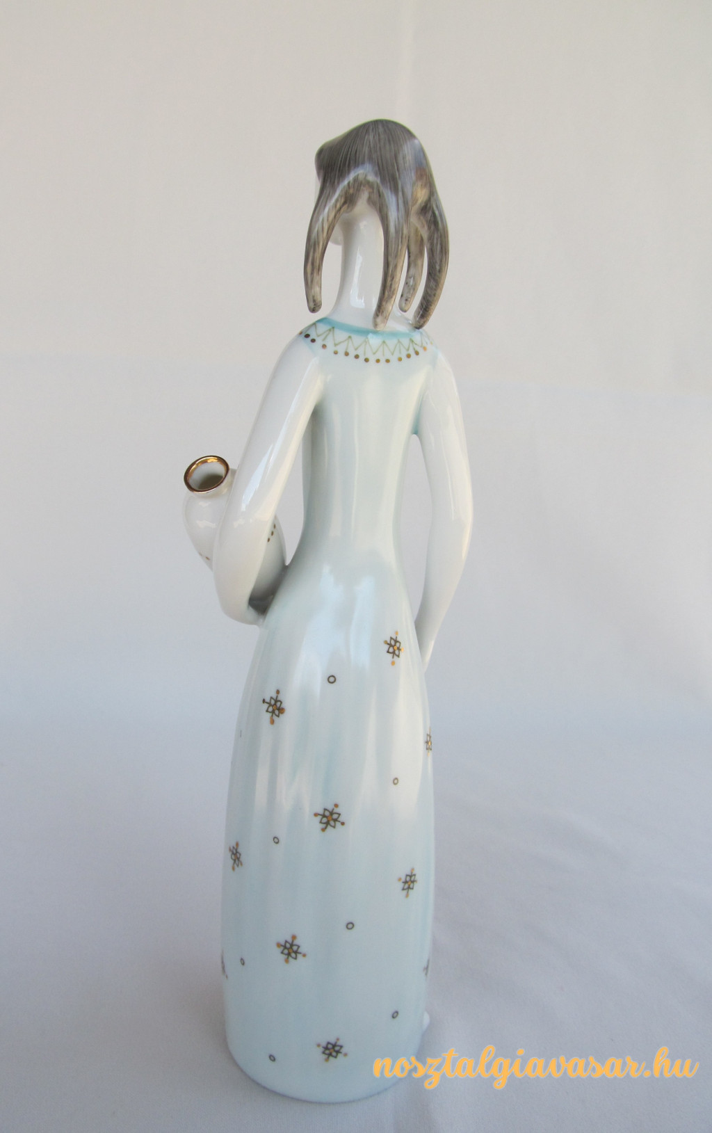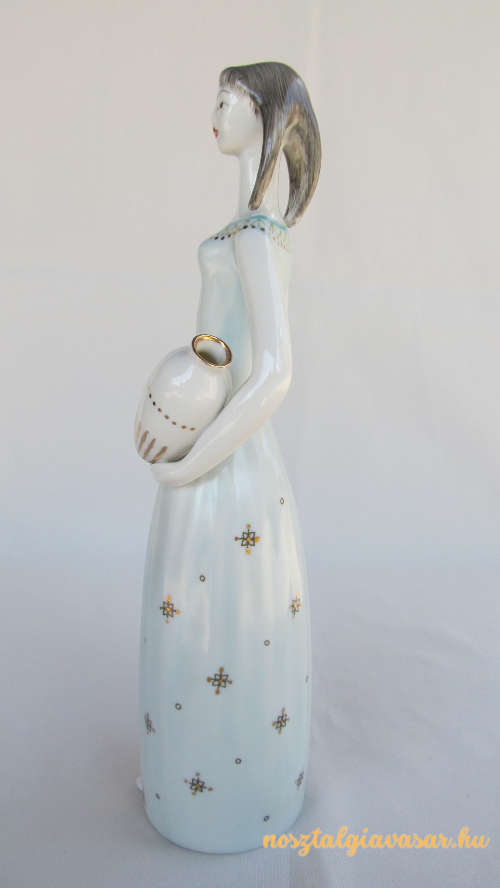 Kézzel festett retro porcelán szobor nő kezében korsóval