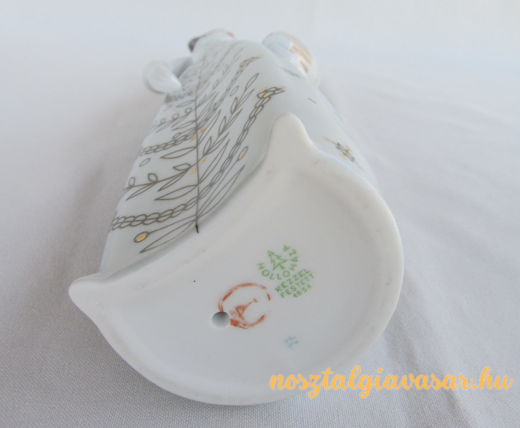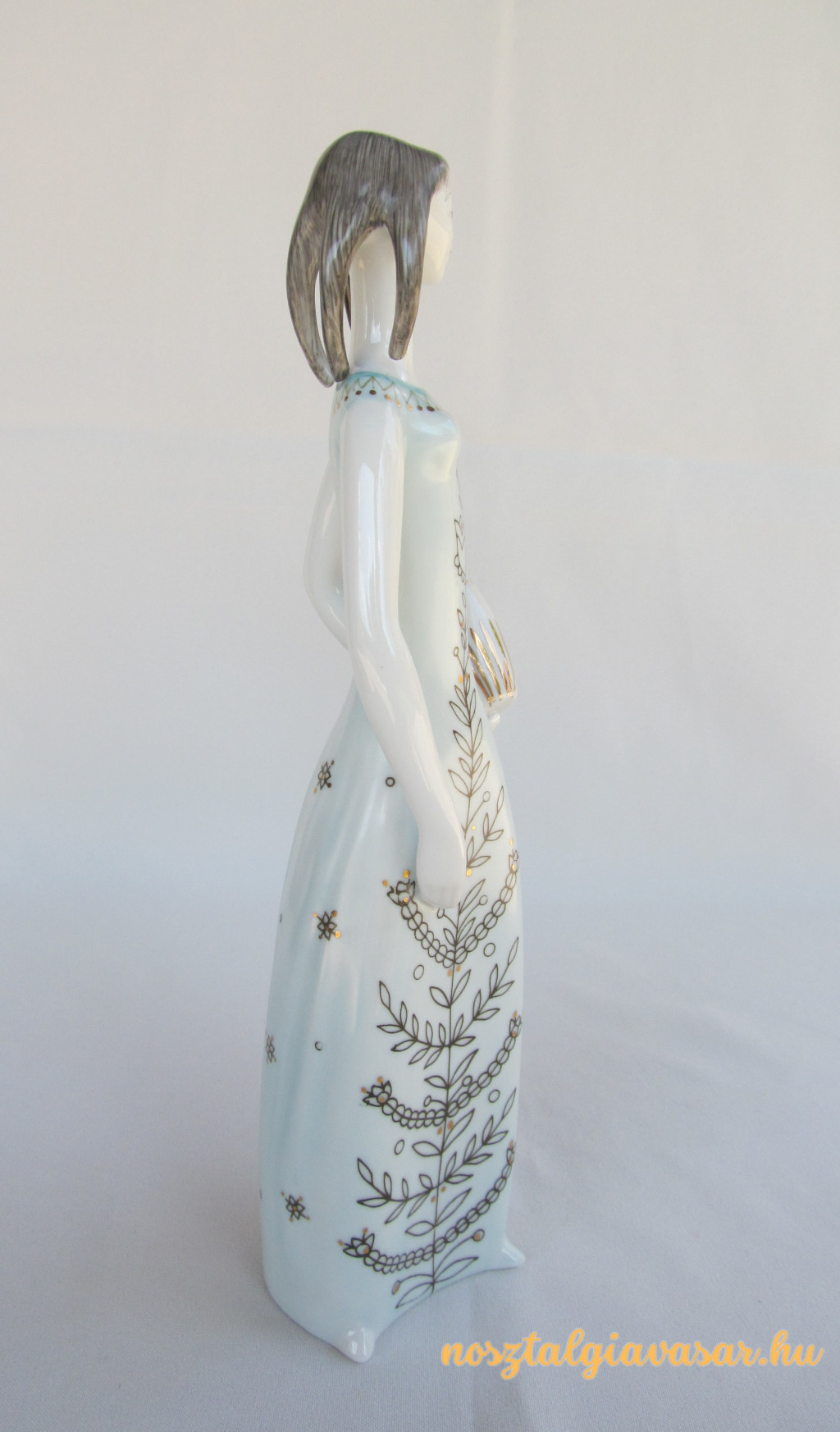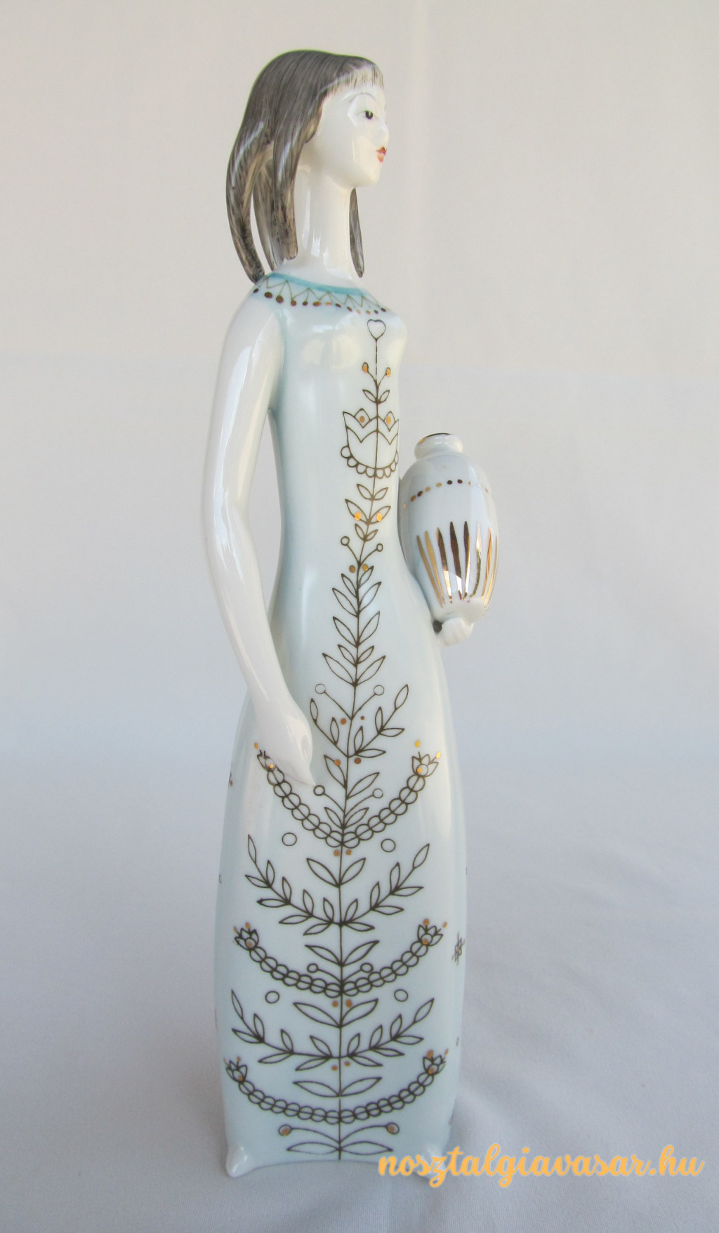 Kézzel festett retro porcelán szobor nő kezében korsóval