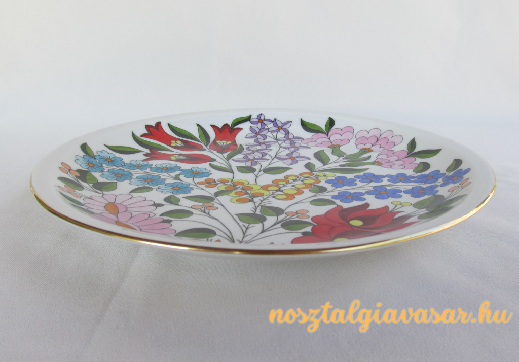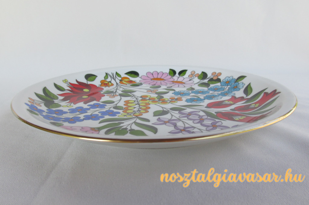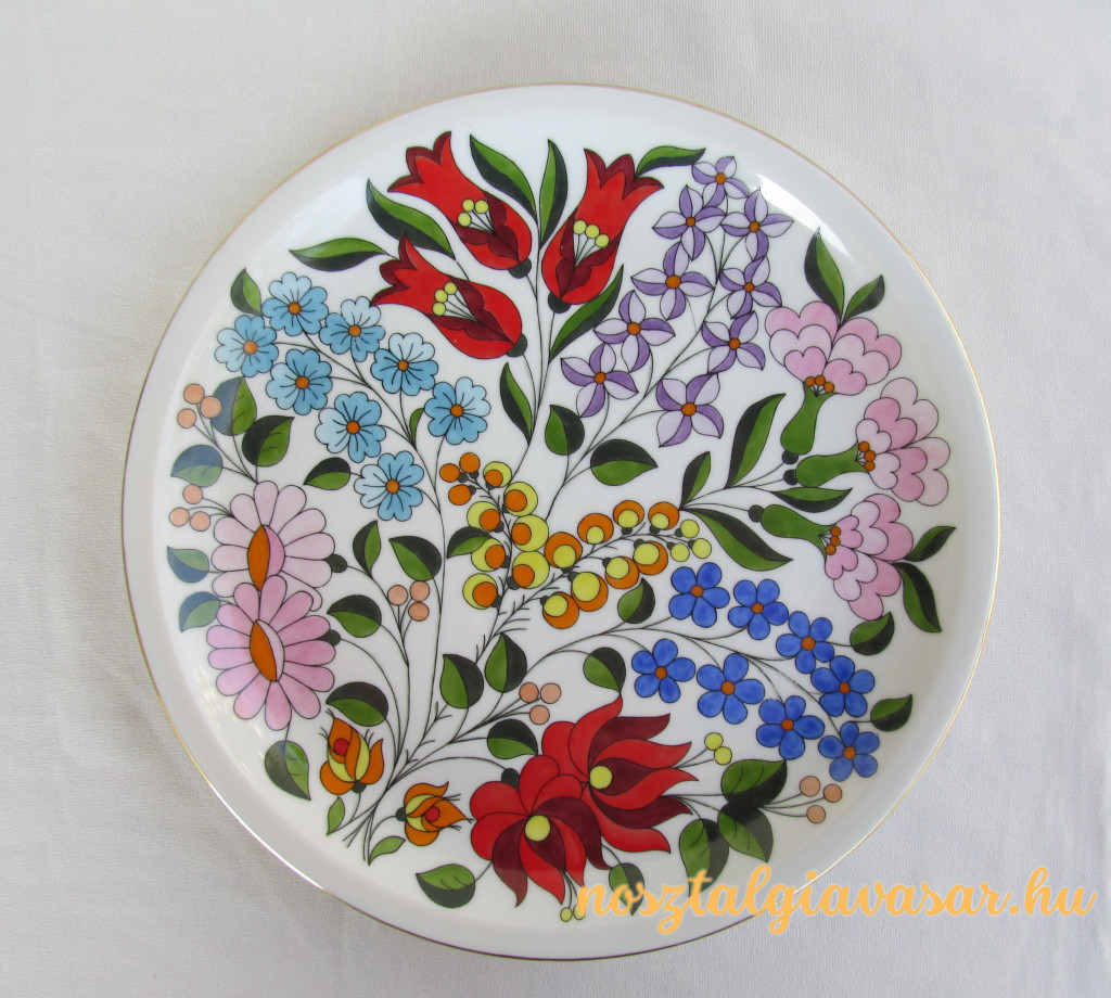 Kézzel festett kalocsai mintás porcelán fali tál Gyártó/készítő: Kalocsai Porcelángyár Méret: átmérő 24 cm Állapot: korának megfelelő, képek szerint Rendelhető mennyiség: 1 db