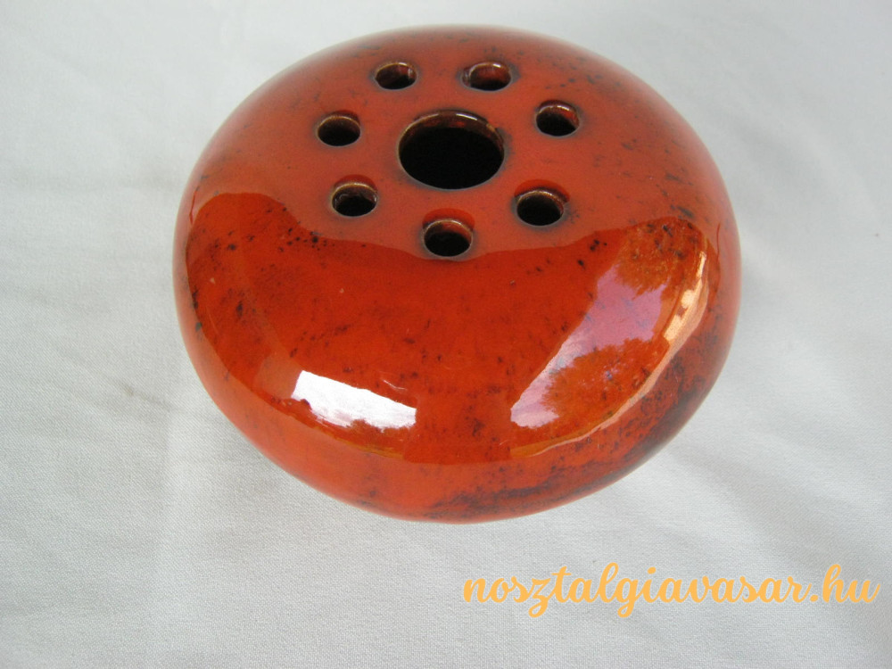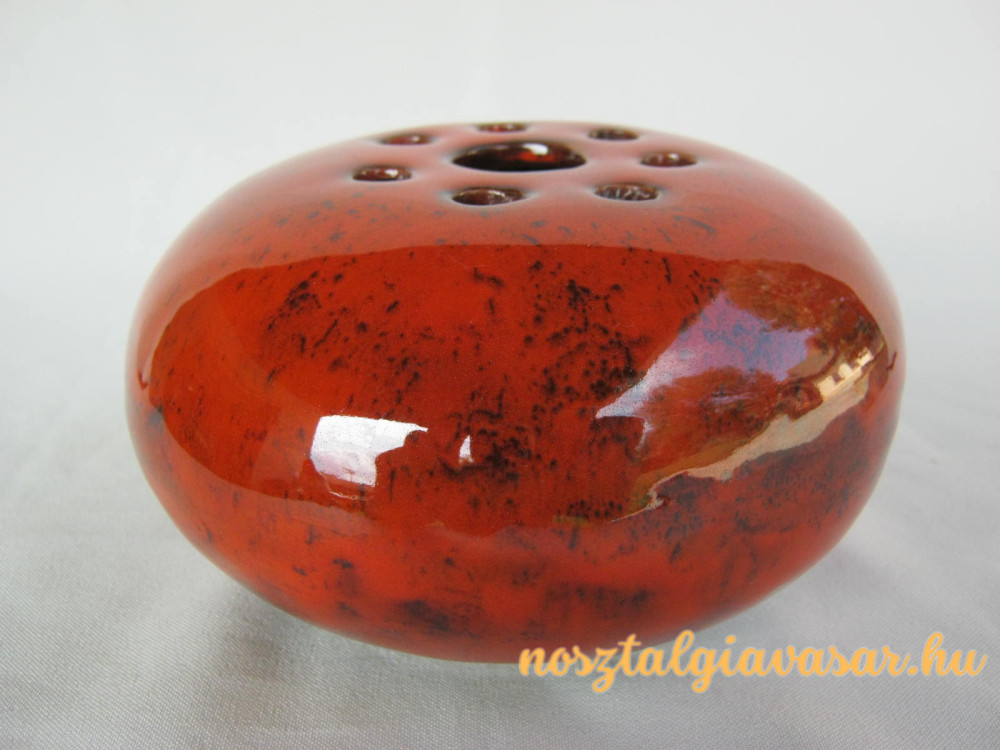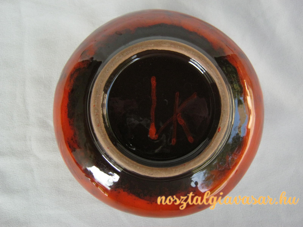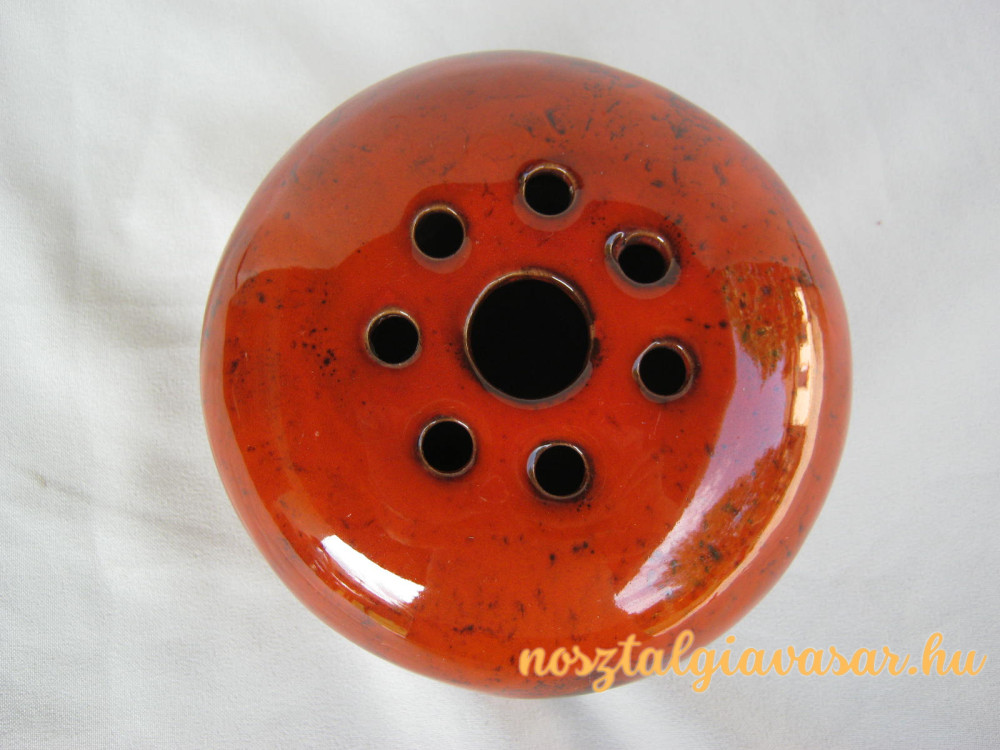Kézzel festett retró magyar iparművész mázas kerámia ikebana váza Jelzés: alján írott VK jelzés Magassága: 8 cm Szélessége: 15 cm Állapota: képek szerinti, korának megfelelő Rendelhető mennyiség: 1 db