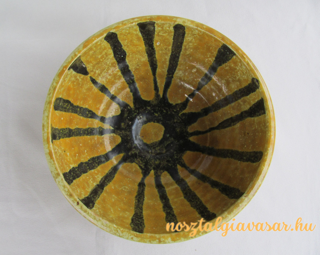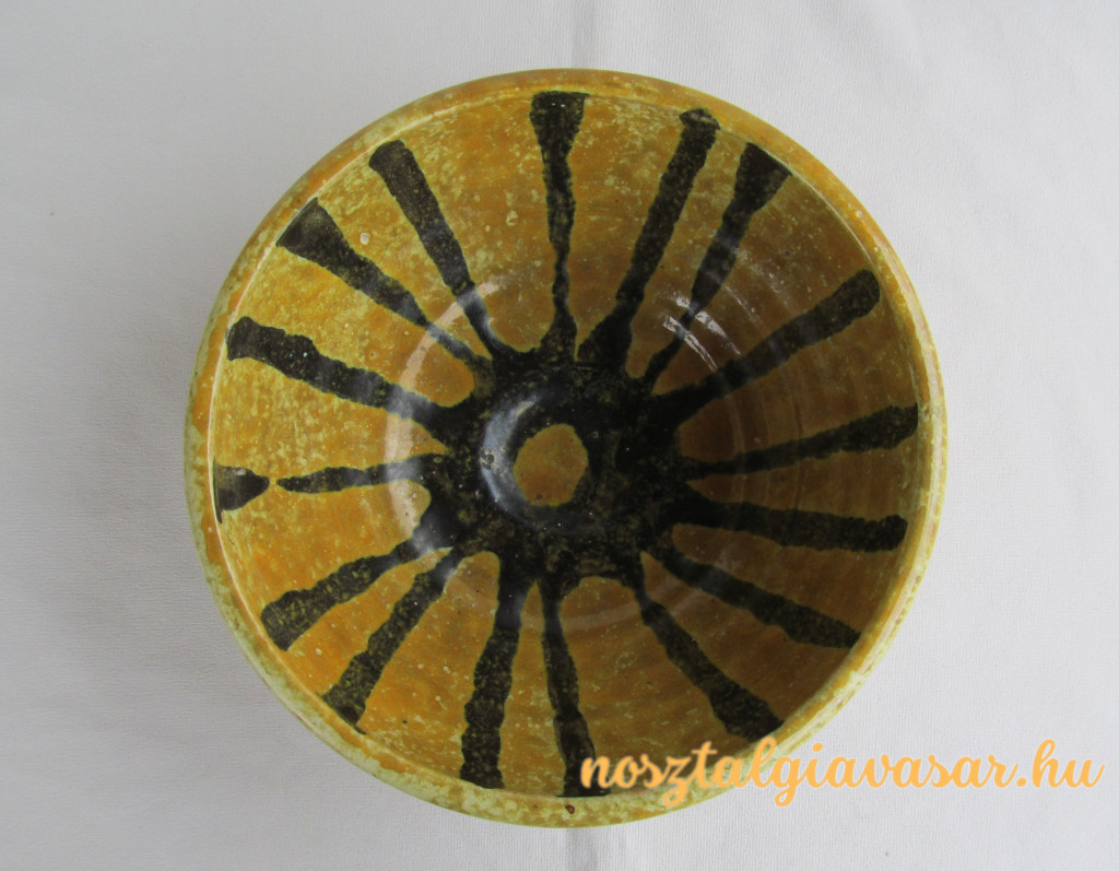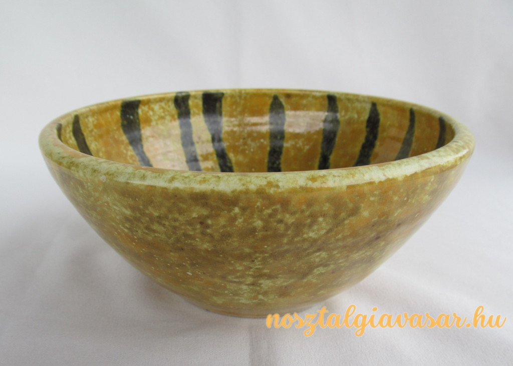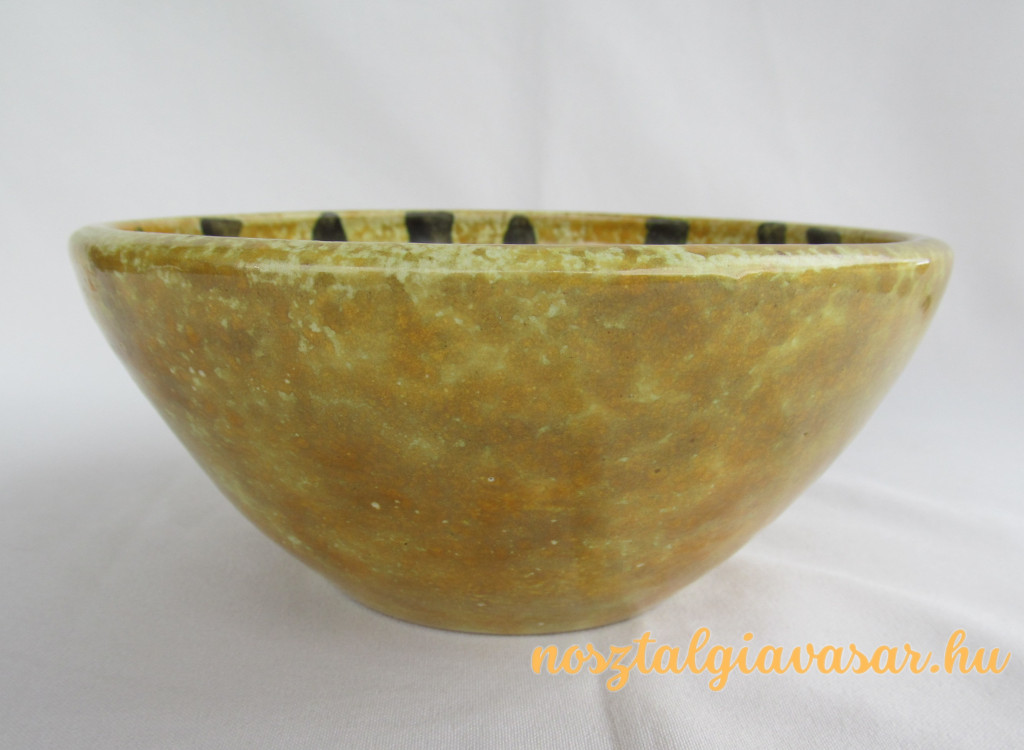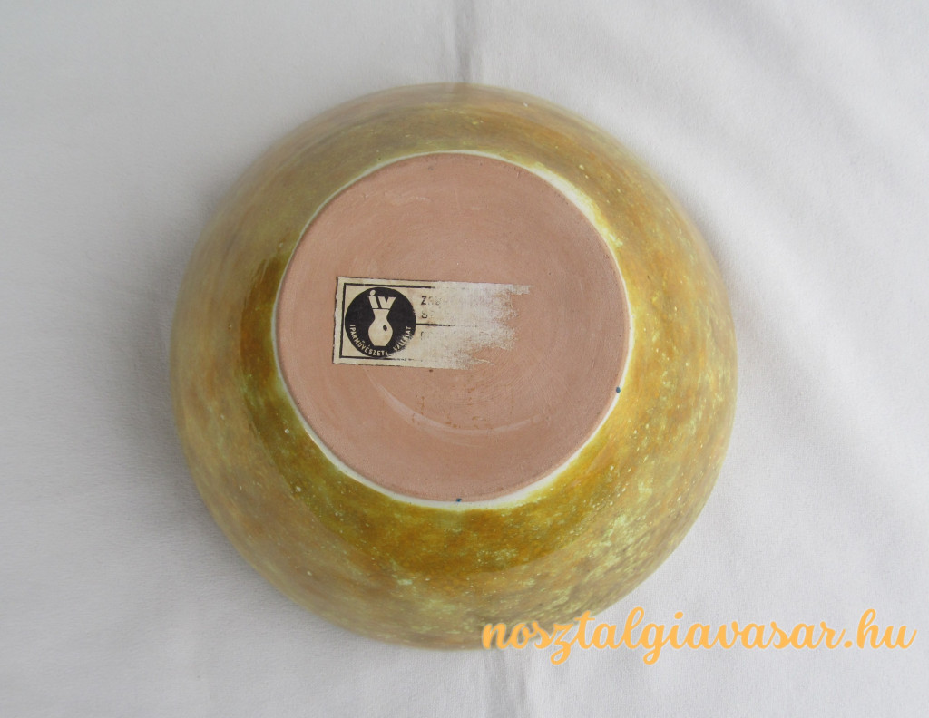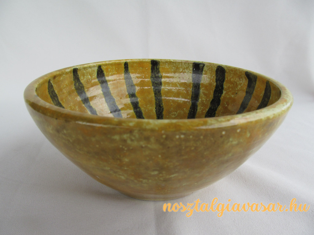 Folyatott mázas retro kerámia tál Jelzés: alján papír címke Méret: átmérő 17 cm, magasság 8 cm Állapot: korának megfelelő, képek szerint Rendelhető mennyiség: 1 db