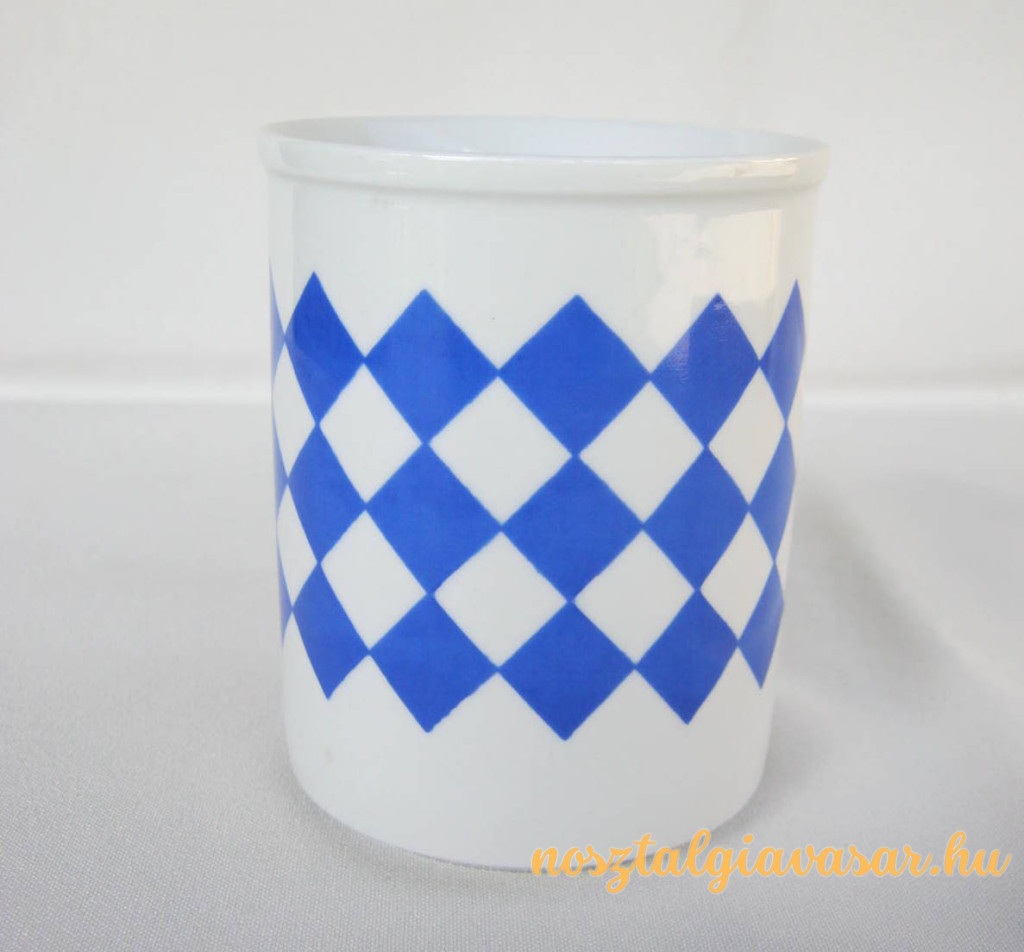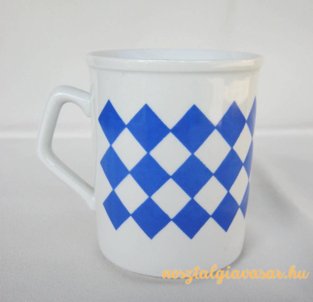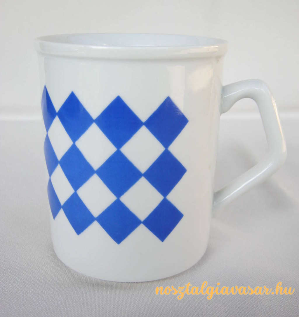 Retró porcelán kék kockás bögre