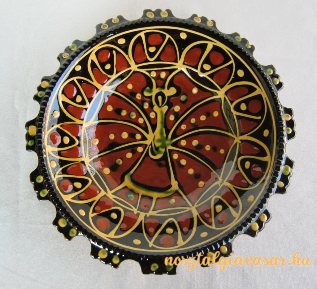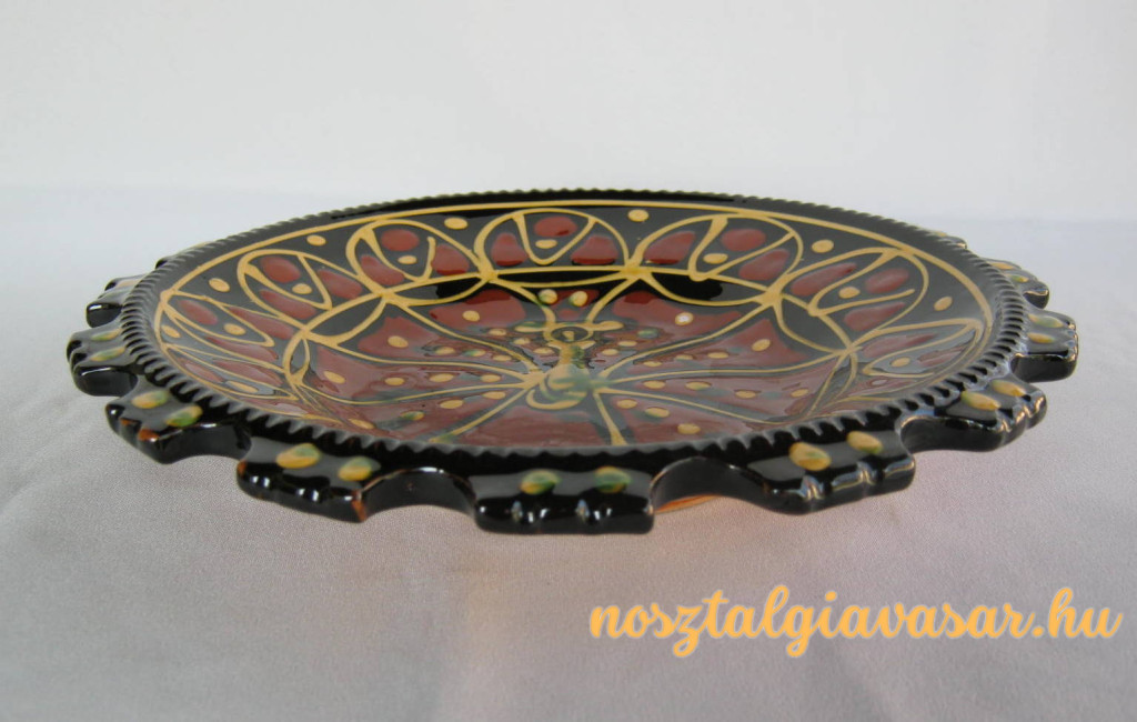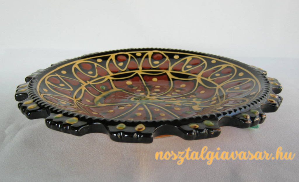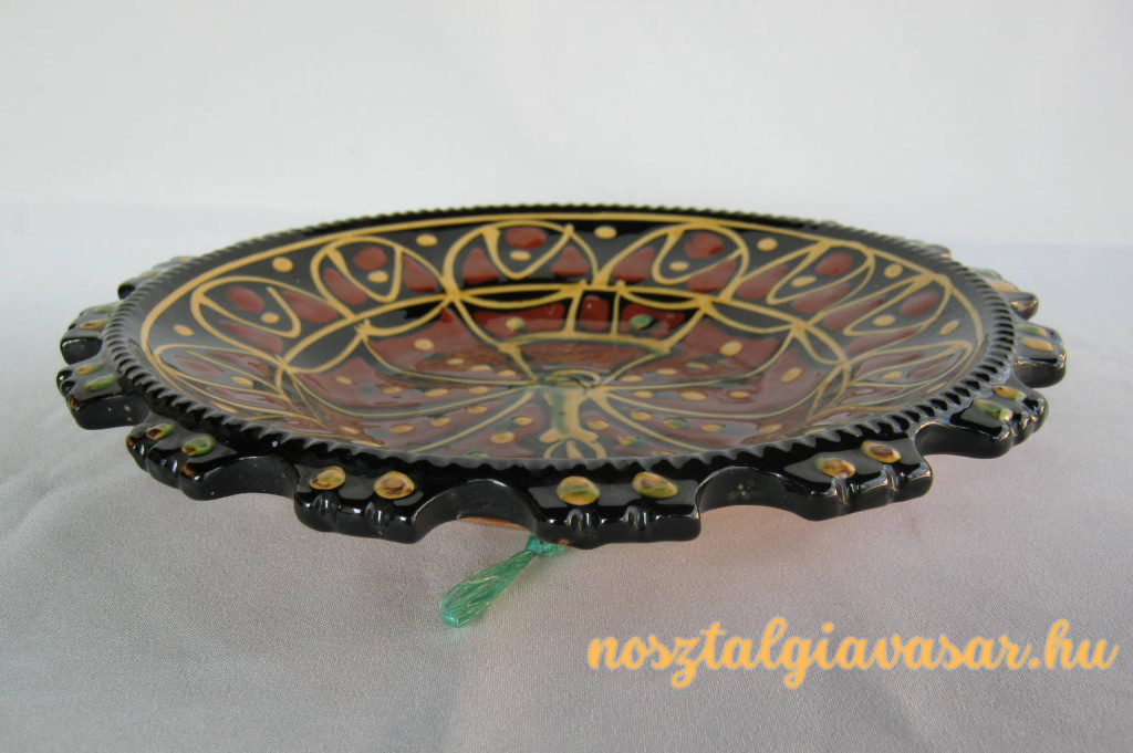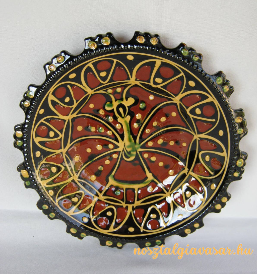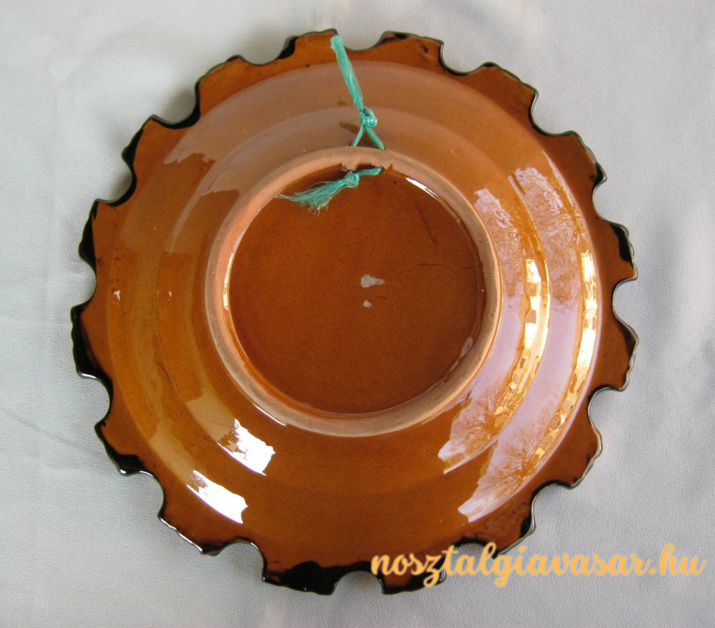 Kézzel festett mázas kerámia fali dísztál Jelzés: nincs Méret: szélesség 26 cm Állapot: korának megfelelő, képek szerint Rendelhető mennyiség: 1 db