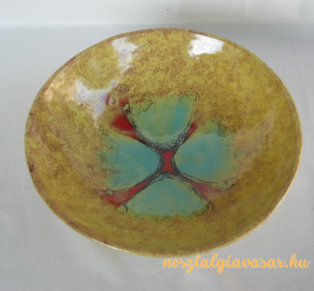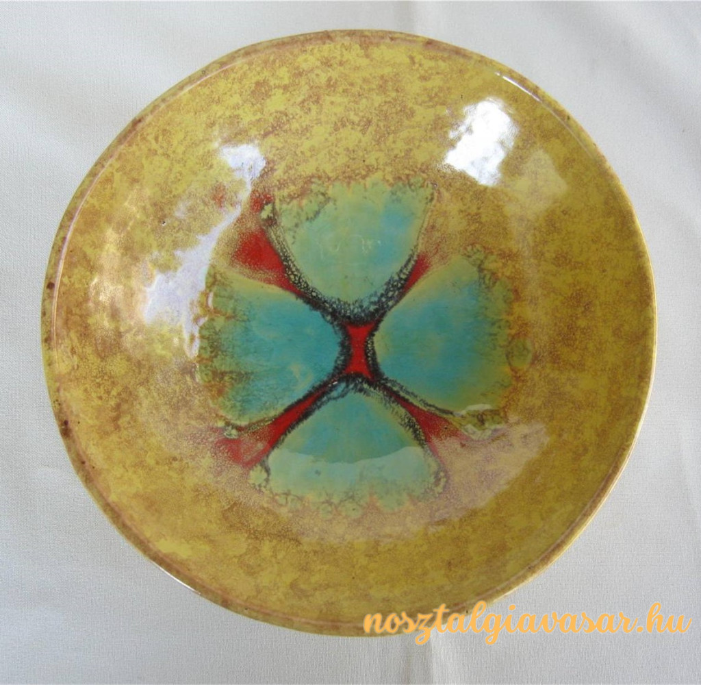 Kézzel festett retró magyar iparművész kerámia fali tál Jelzés: alján Iparművészeti Vállalat zsűricímke Méret: szélesség 18 cm Állapot: korának megfelelő, képek szerint Rendelhető mennyiség: 1 db