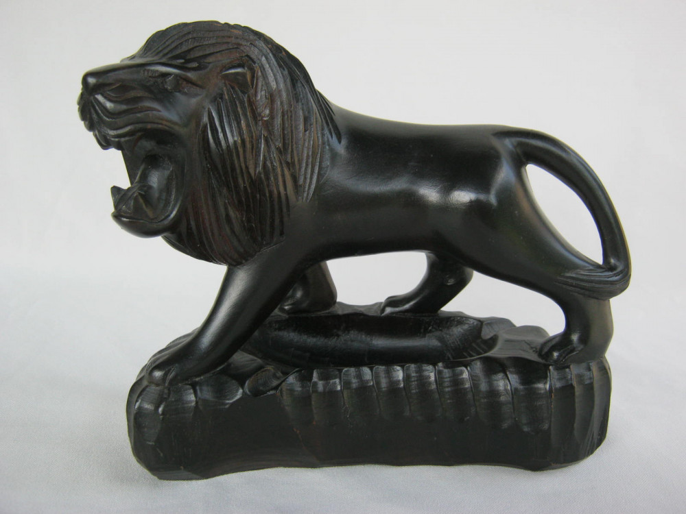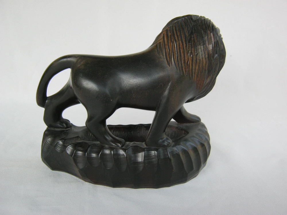Fából faragott oroszlán figura. Jelzés nincs rajta. Magassága 15 cm, hossza 17 cm. Korának megfelelő állapotban. Egy darab rendelhető belőle, a képek az eladó tárgyról készültek.