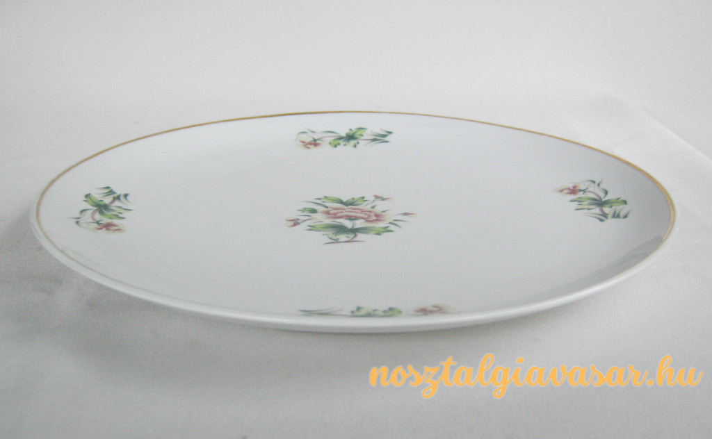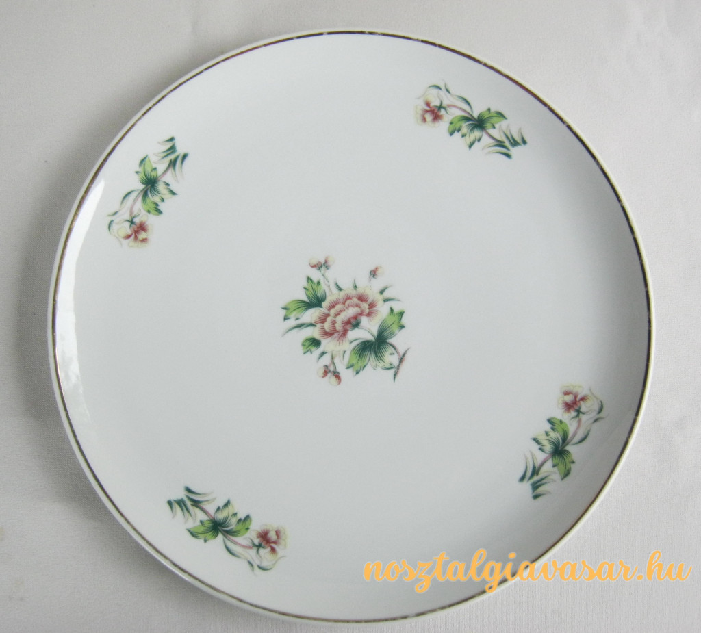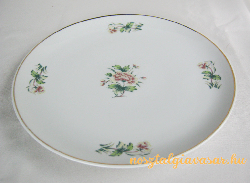 Porcelán tál virág mintával Gyártó/készítő: Hollóházi Porcelángyár Jelzés: alján kék pecsét Méret: szélesség 25 cm Állapot: peremén az aranyozáson kopás, korának megfelelő, képek szerint Rendelhető mennyiség: 1 db