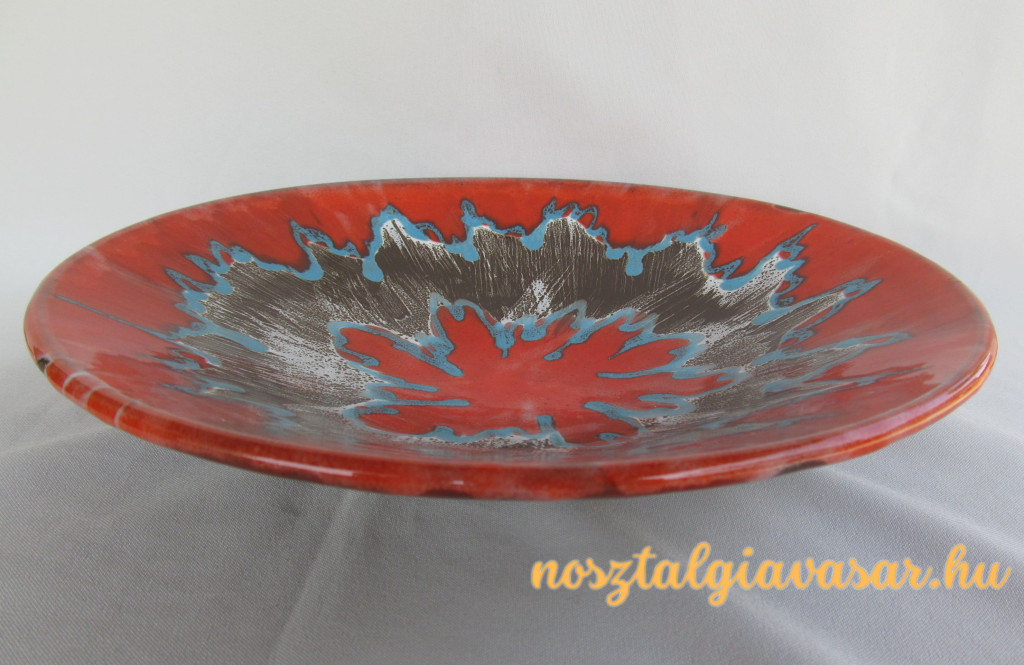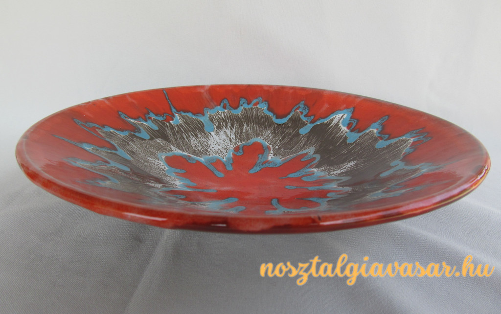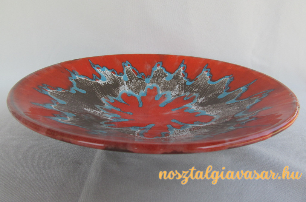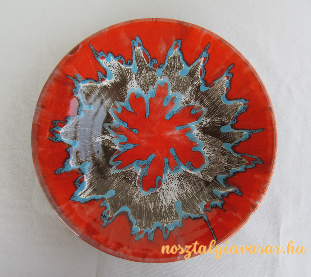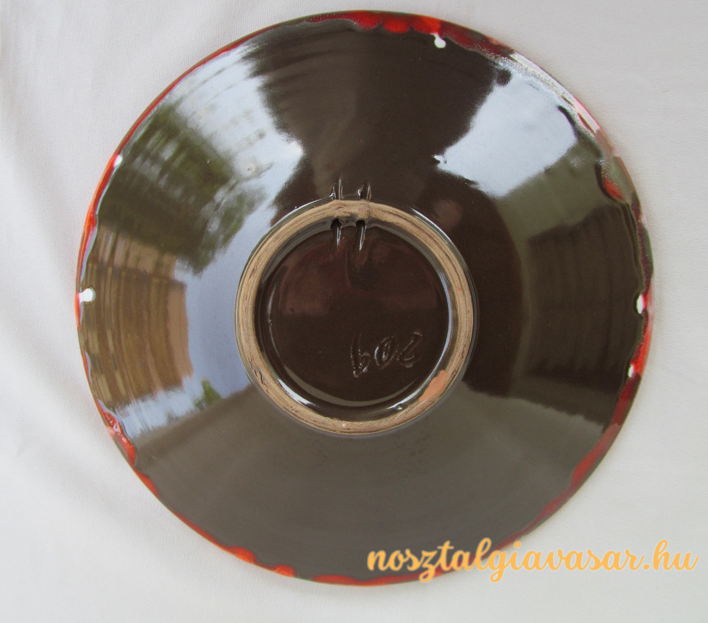 Retro magyar iparművészeti mázas kerámia fali dísztál Jelzés: nincs Méret: szélesség 27 cm Állapot: képek szerint, korának megfelelő Rendelhető mennyiség: 1 db