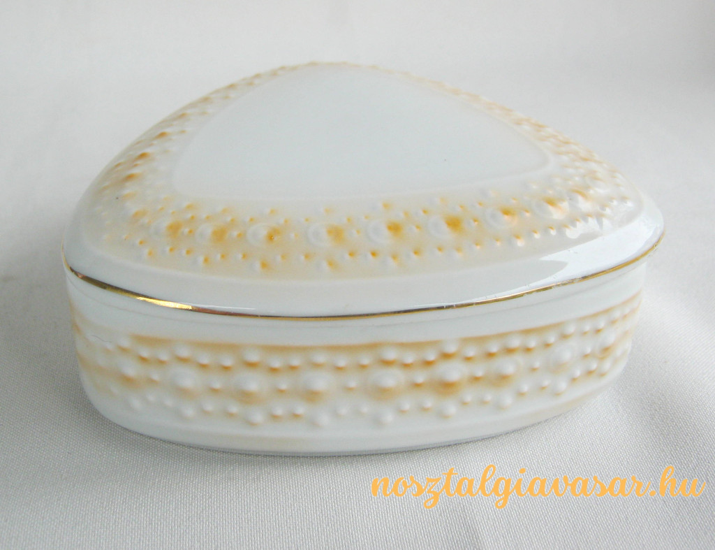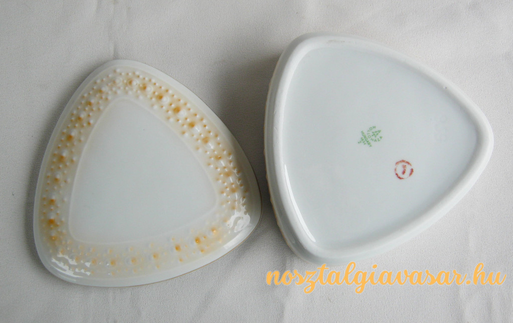 Retró porcelán fedeles doboz Gyártó/készítő: Hollóházi Porcelángyár Jelzés: alján zöld pecsét Méret: szélesség 12 cm Állapot: korának megfelelő, képek szerint Rendelhető mennyiség: 1 db