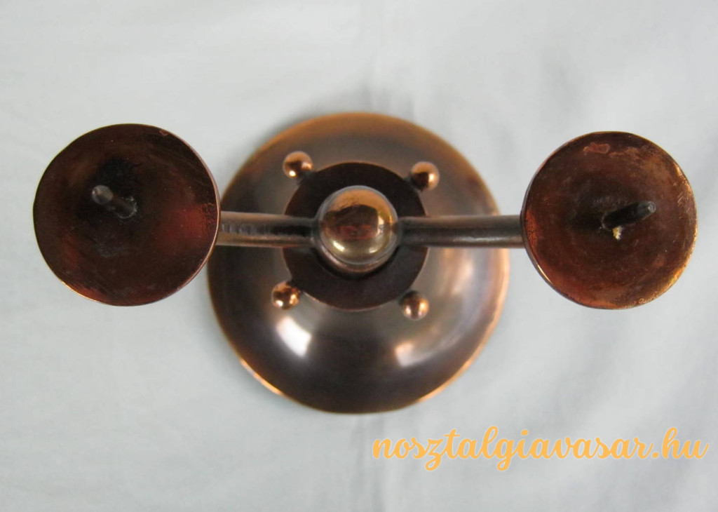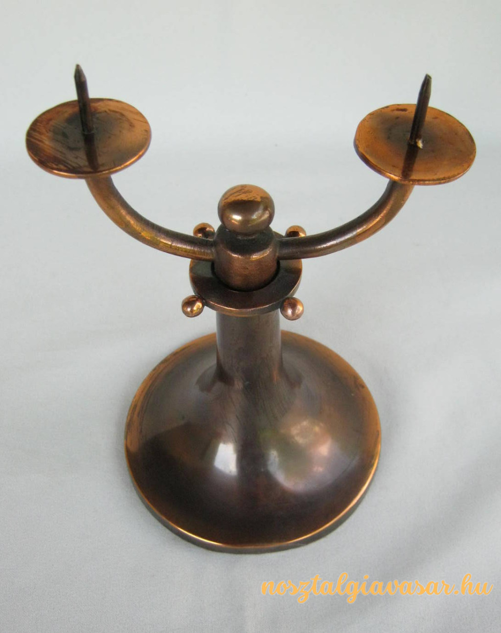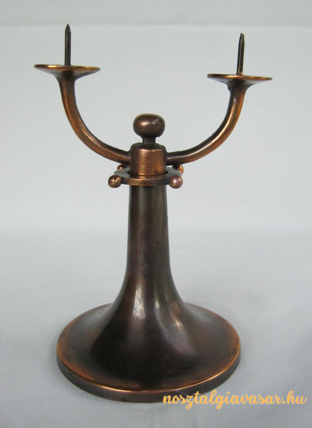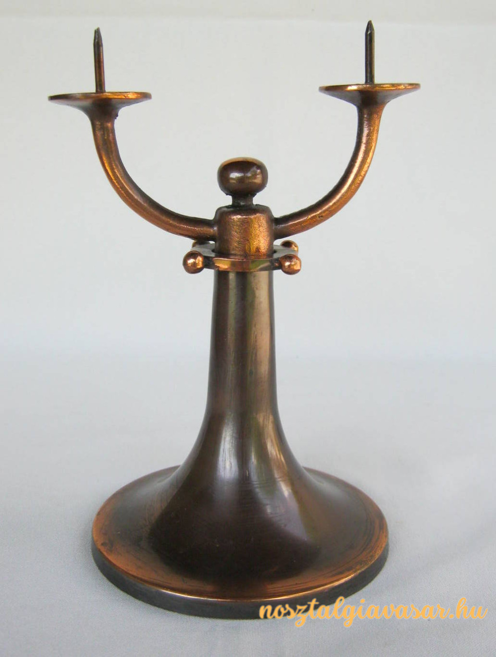 Retro iparművészeti rézötvözet gyertyatartó Méret: magasság 18 cm Jelzés: nincs Állapot: kopások, karcok láthatók rajta, képek szerint Rendelhető mennyiség: 1 db