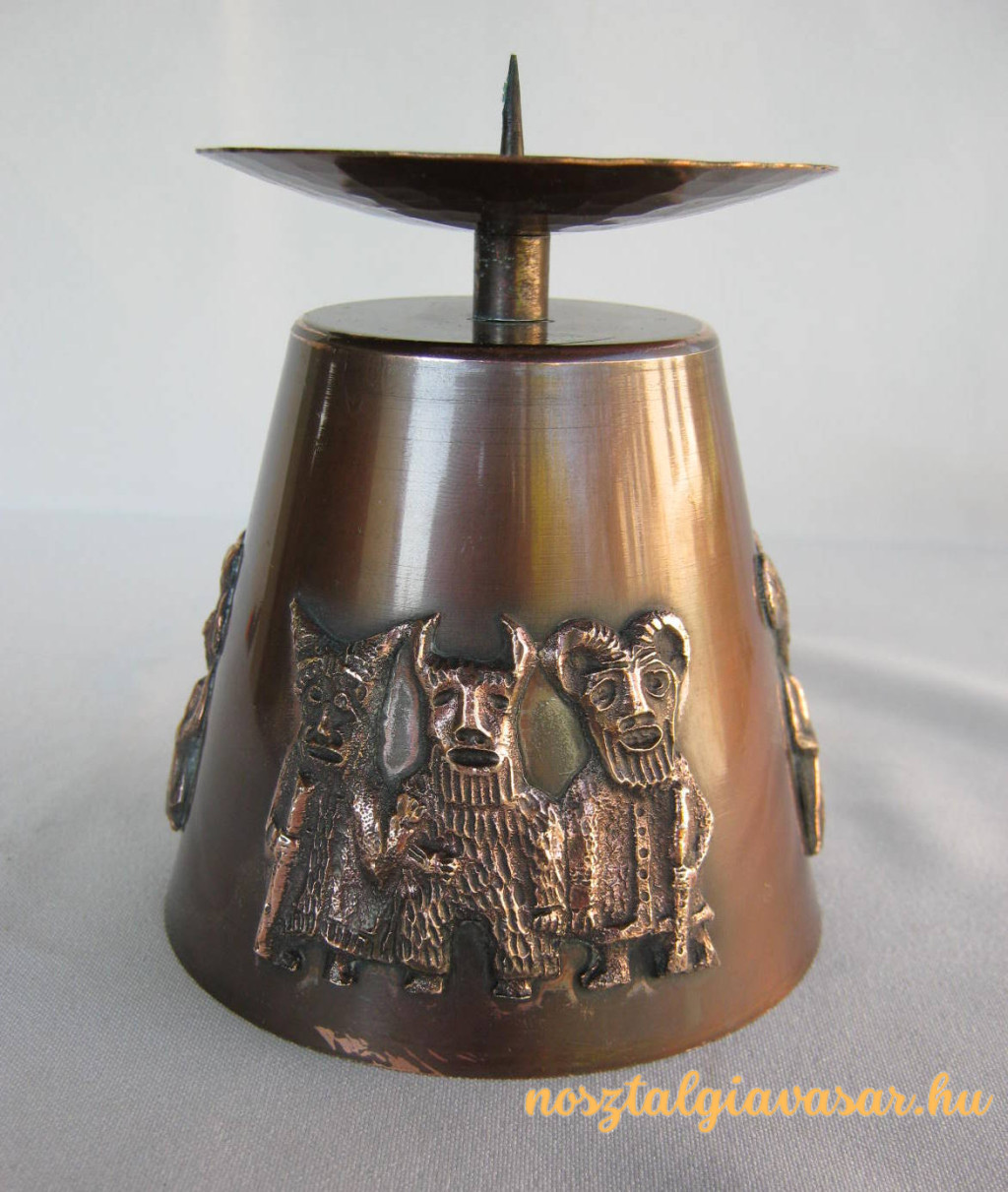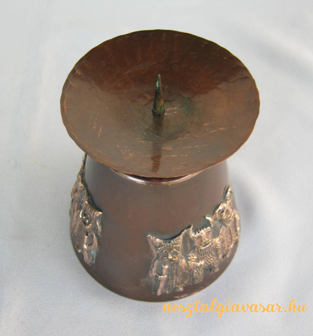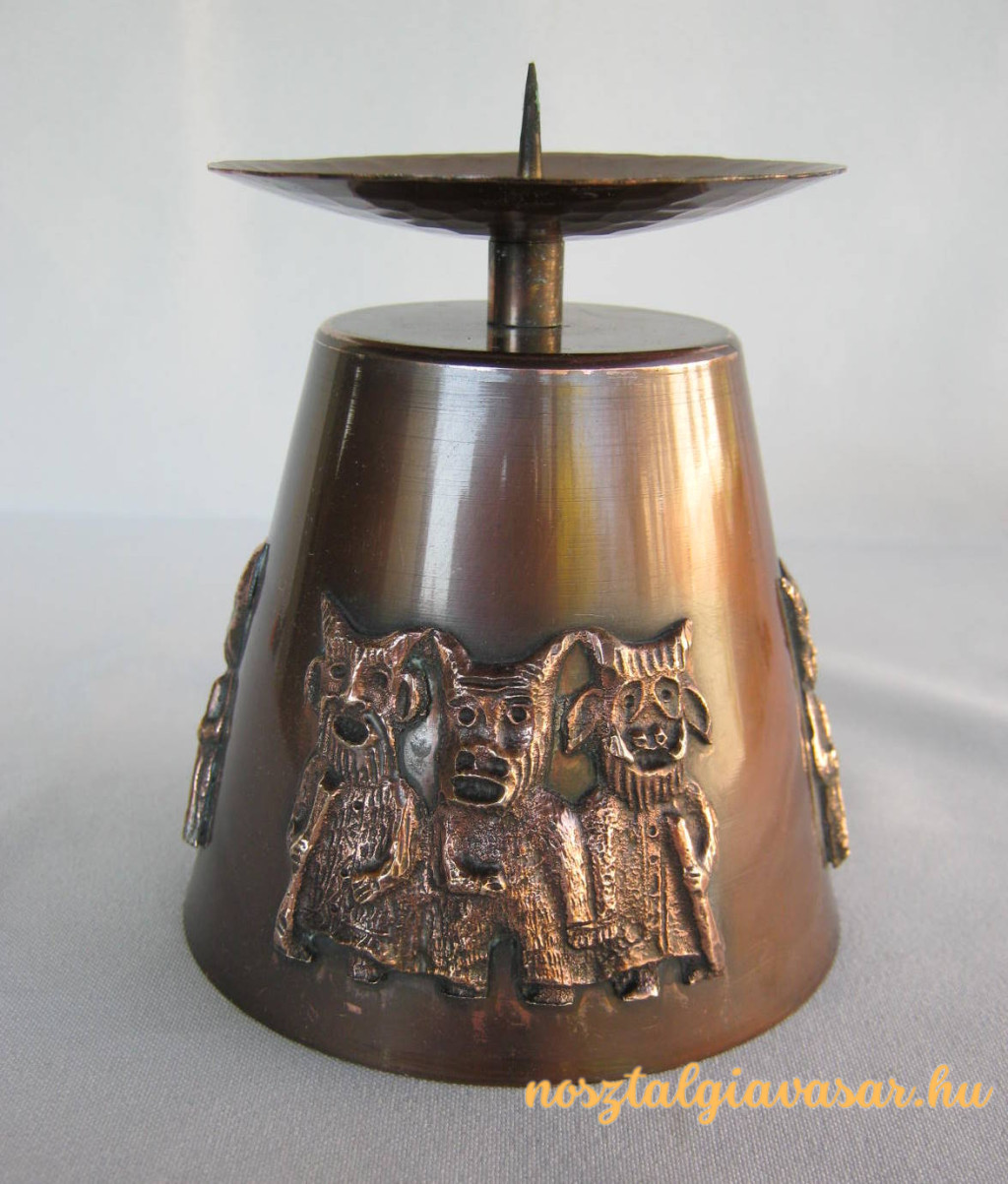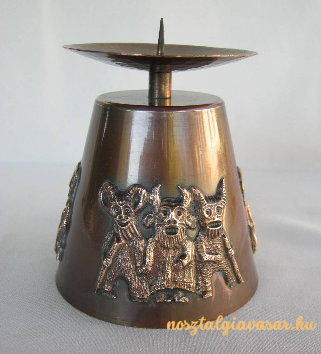 Retró magyar iparművészeti fémmunka rézötvözet busó figurás gyertyatartó