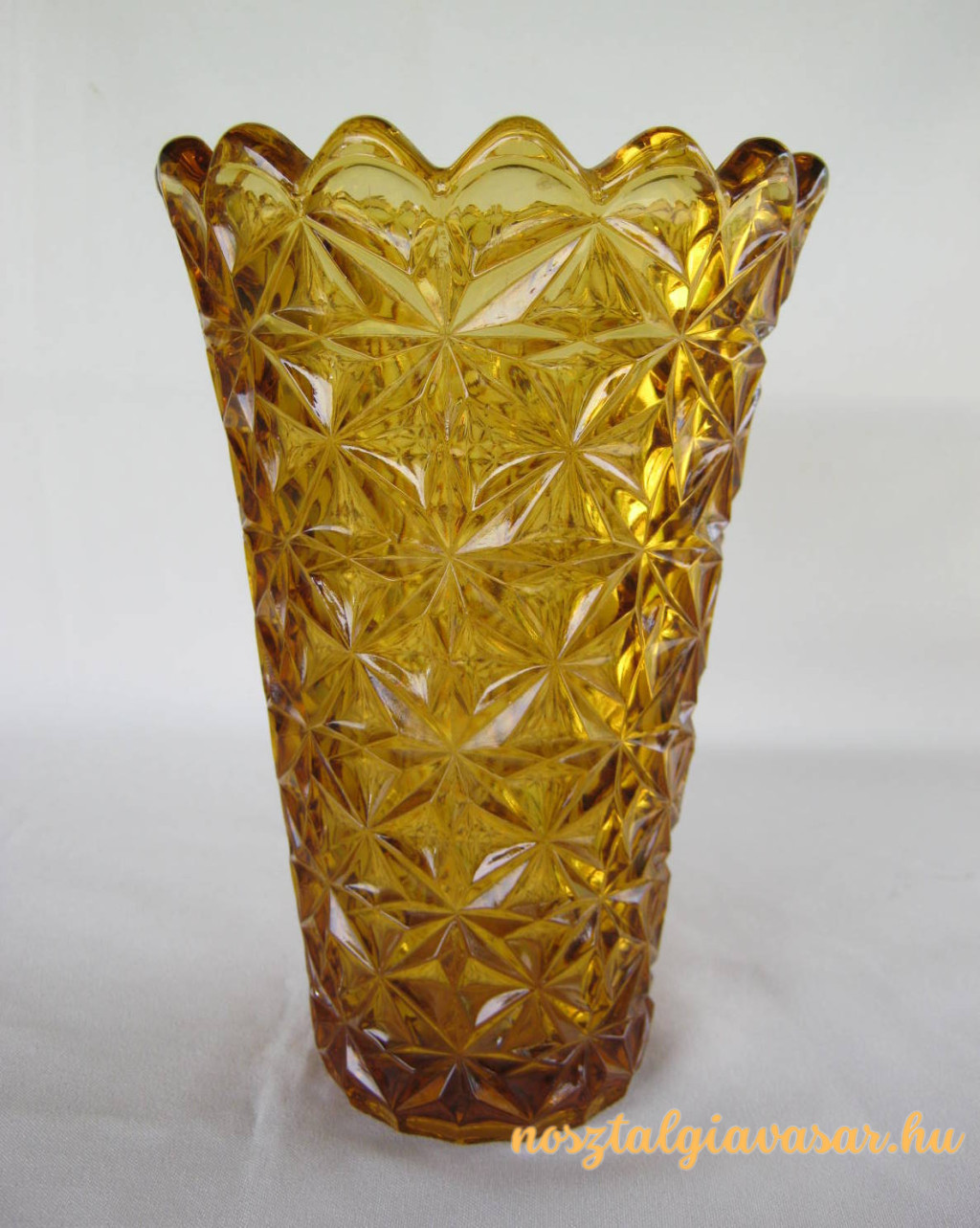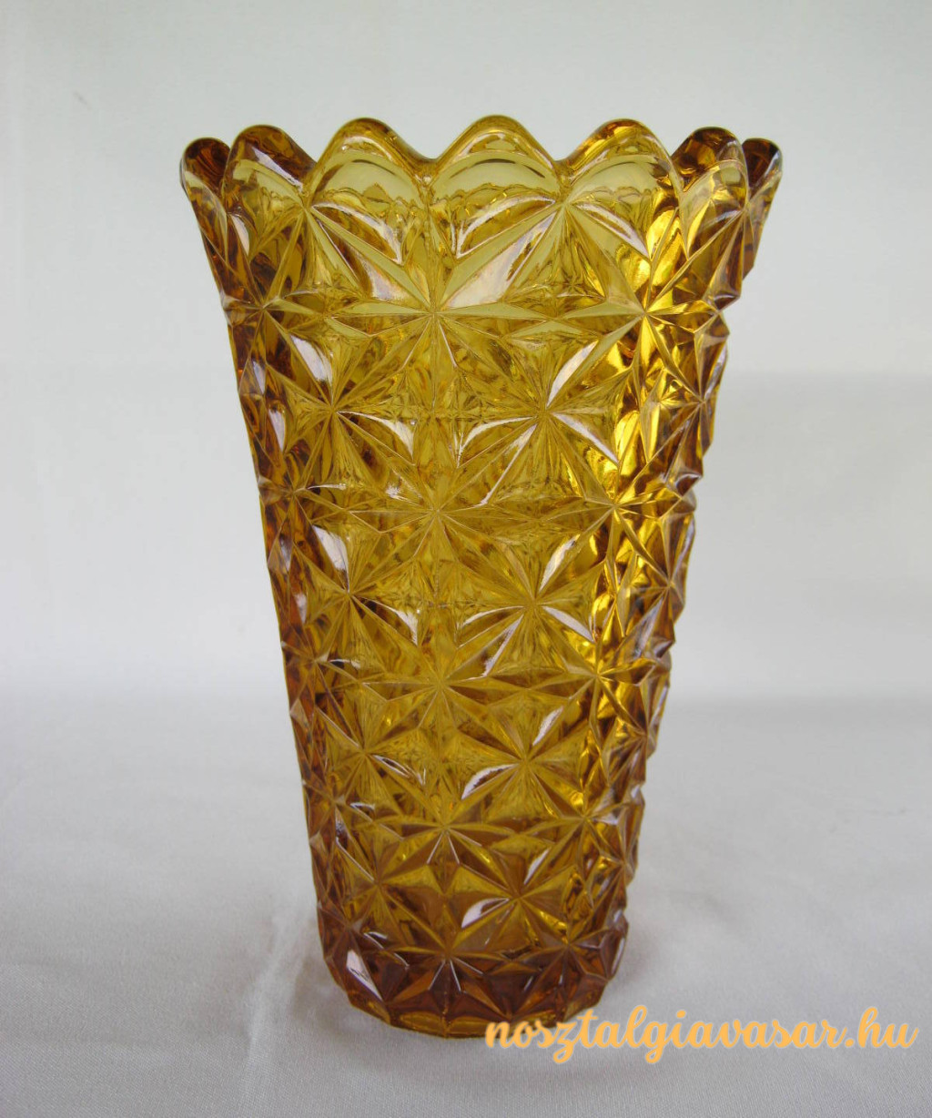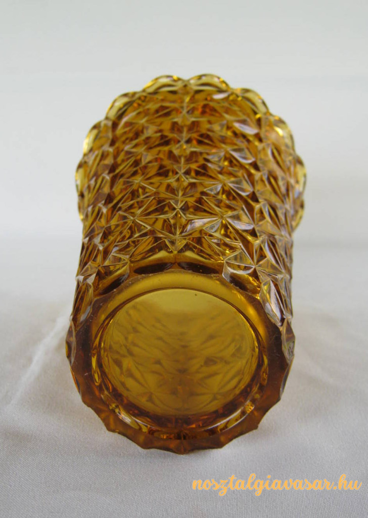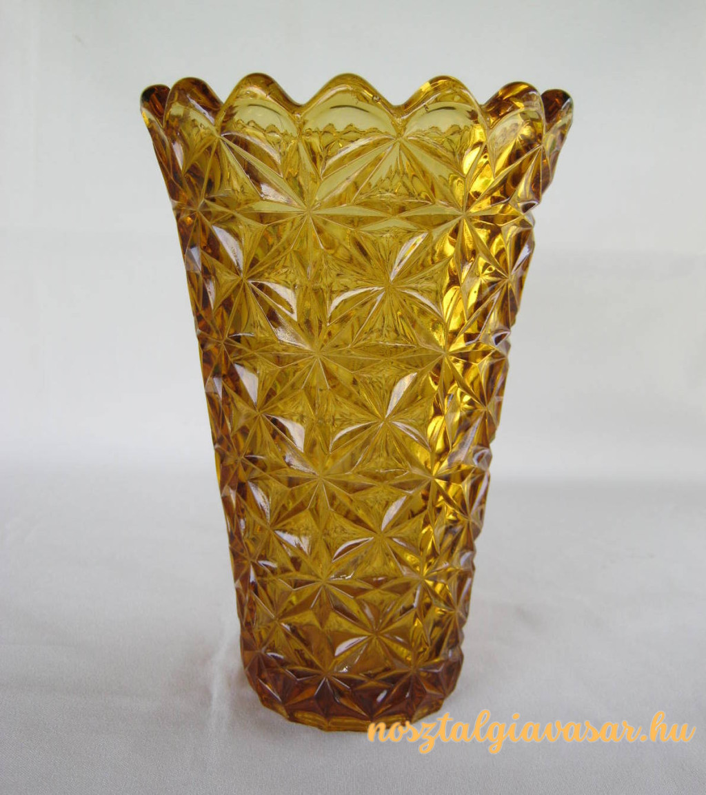 Sárgás árnyalatú színes üveg váza Jelzés: nincs Méret: magasság 19 cm Súly: 950 gr Állapot: korának megfelelő, képek szerint Rendelhető mennyiség: 1 db