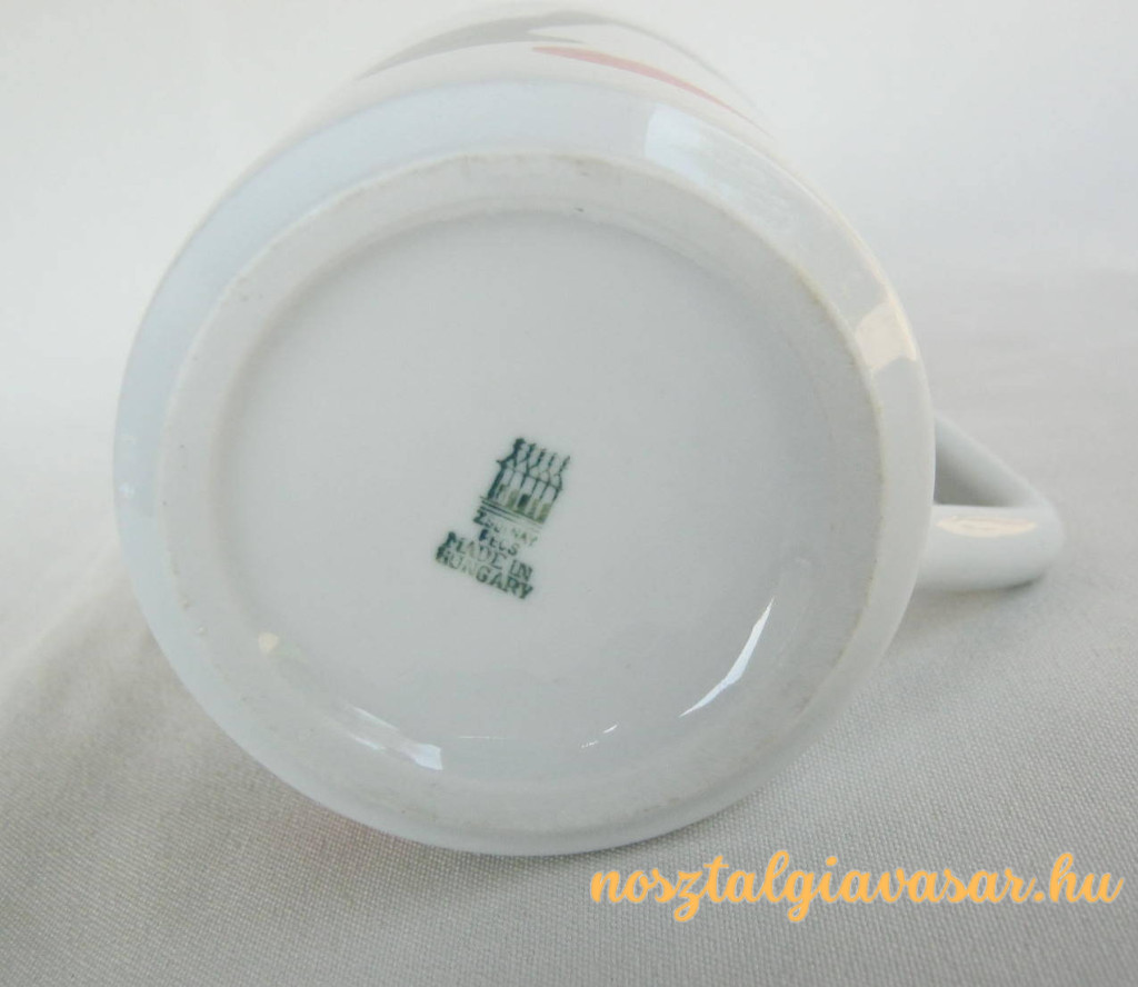 Porcelán bögre modern mintával Gyártó/készítő: Zsolnay Porcelángyár Jelzés: alján pecsét Méret: magasság 9 cm, átmérő 7 cm Állapot: képek szerint, korának megfelelő Rendelhető mennyiség: 1 db