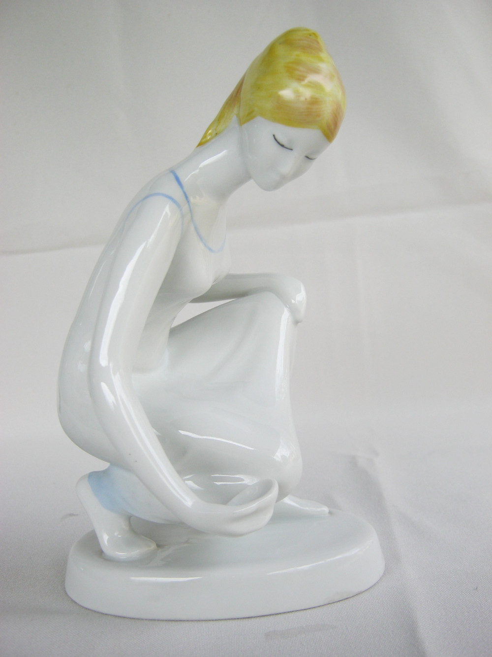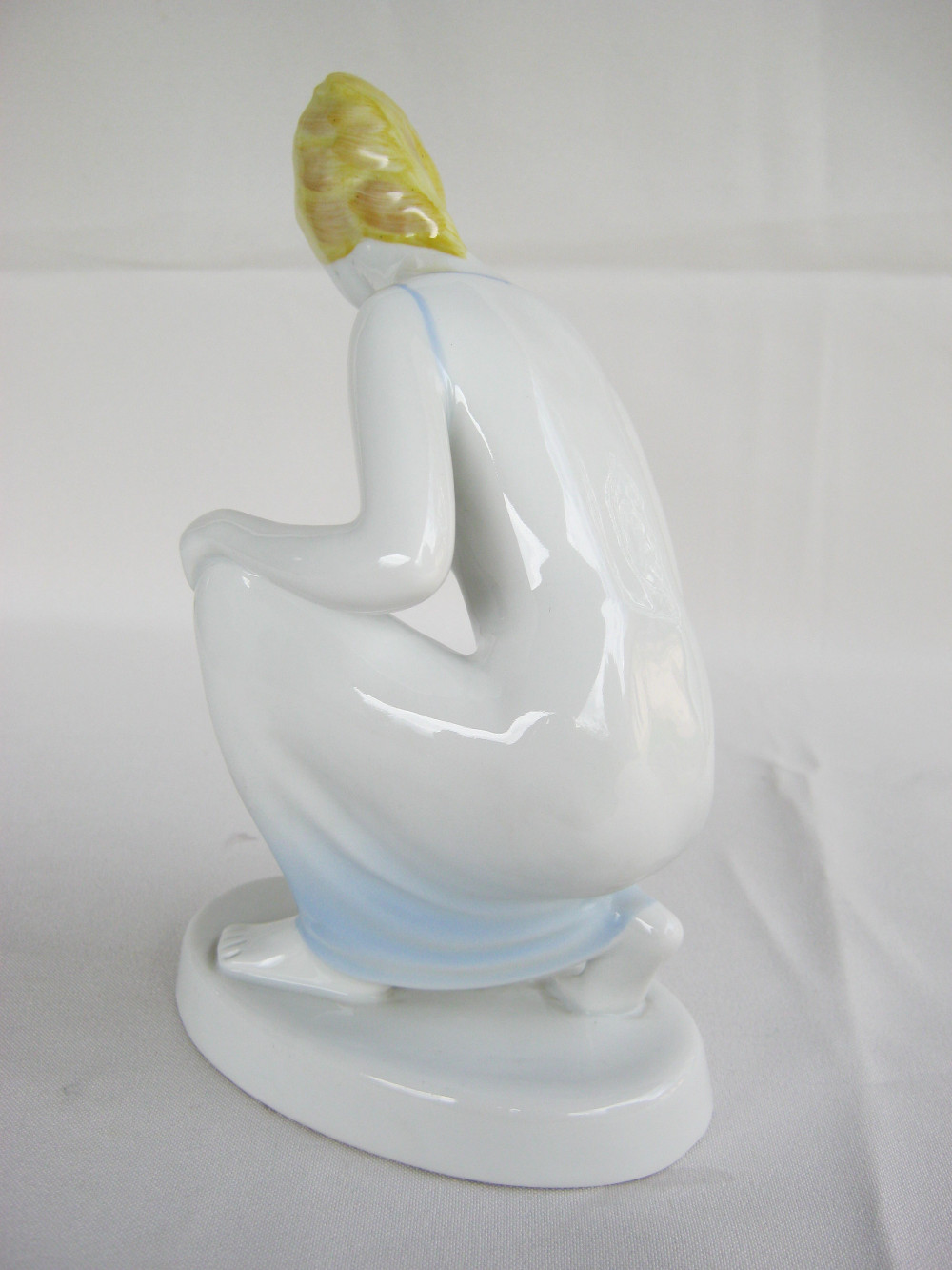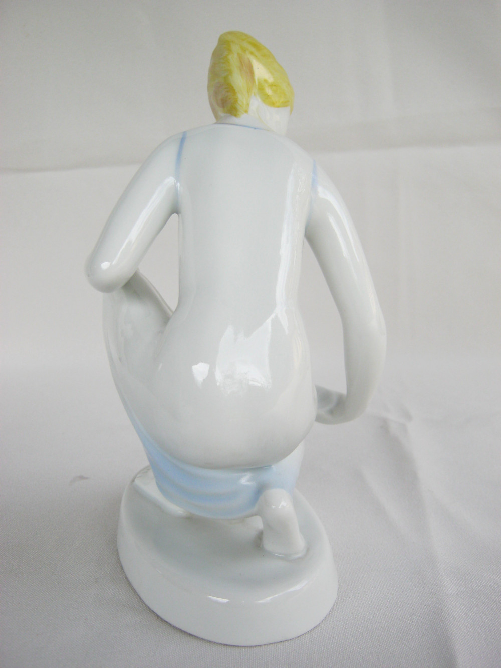 Kézzel festett retró Hollóházi porcelán vízmerítő lány szobor.