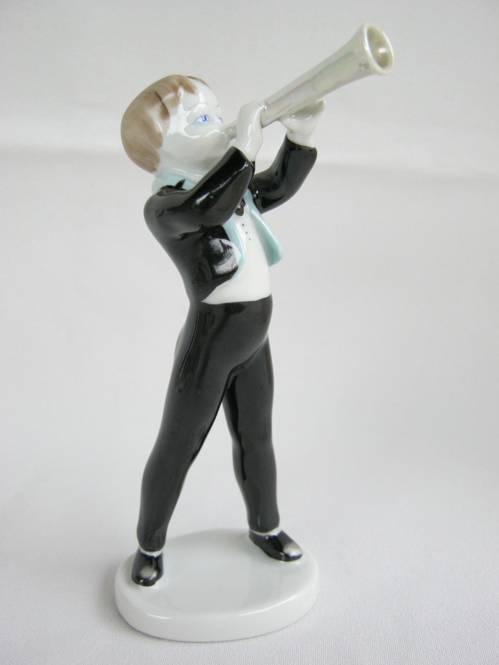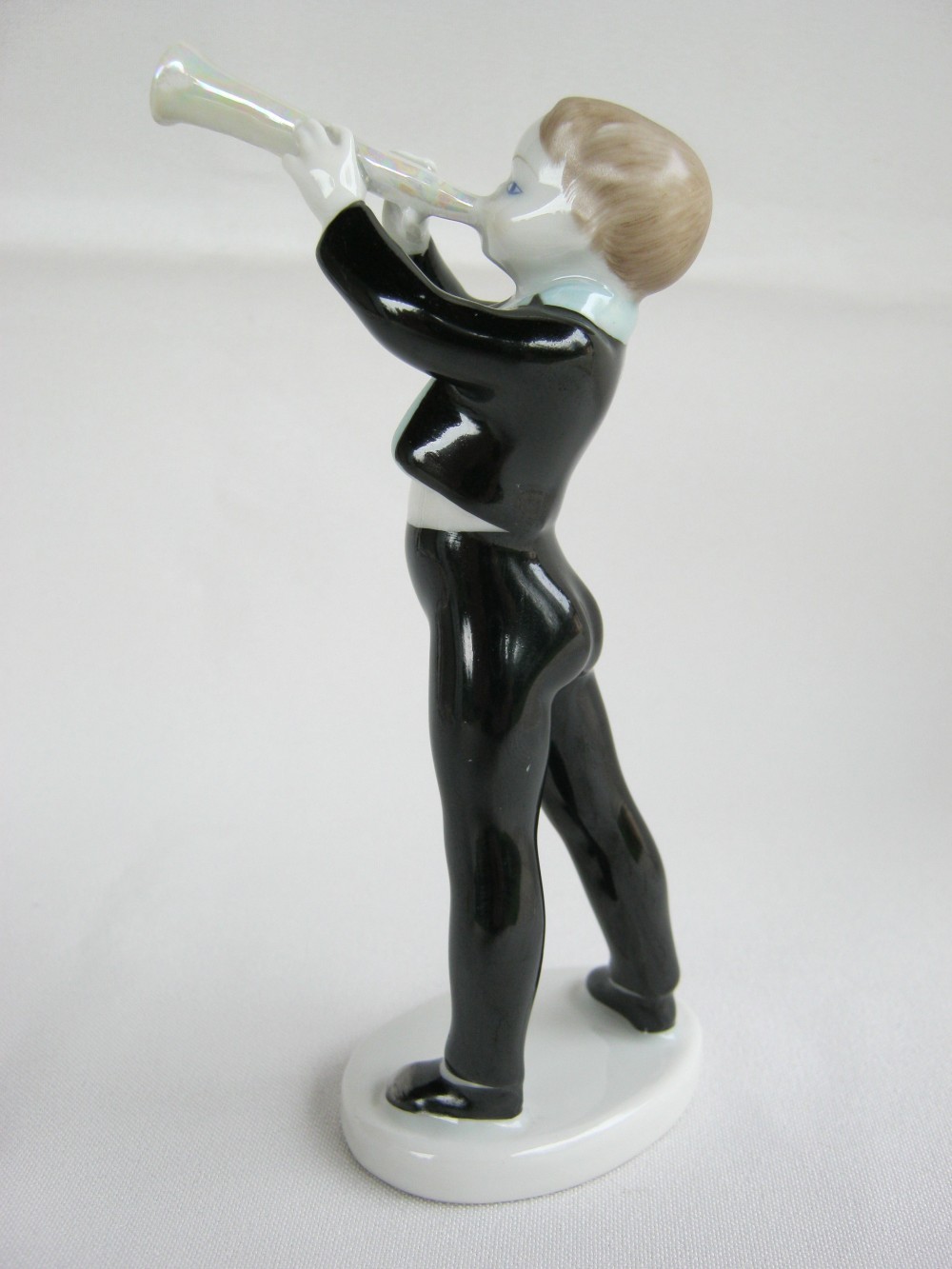 Kézzel festett retró Hollóházi porcelán kisfiú figura.