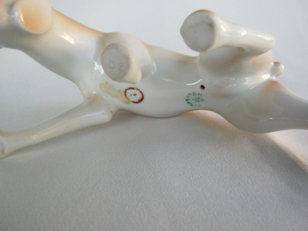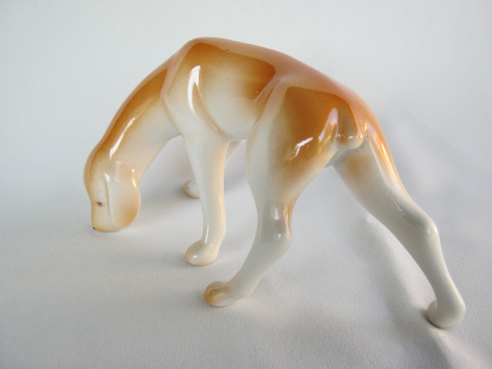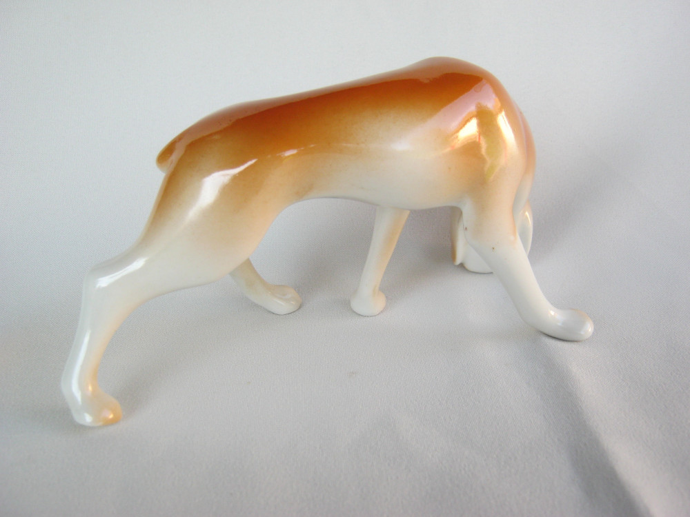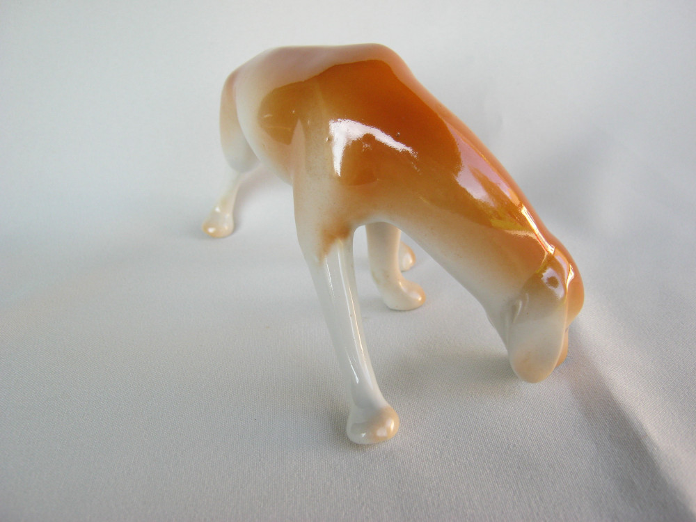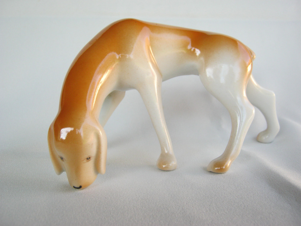 Kézzel festett retró Hollóházi porcelán szimatoló kutya figura.